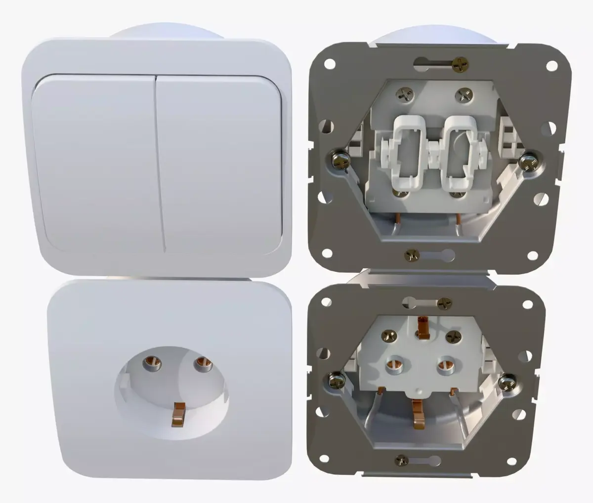 The 3D model 'Electrical Socket and Light Switch with Disassembled M1' is an unbranded design made for professional projects.