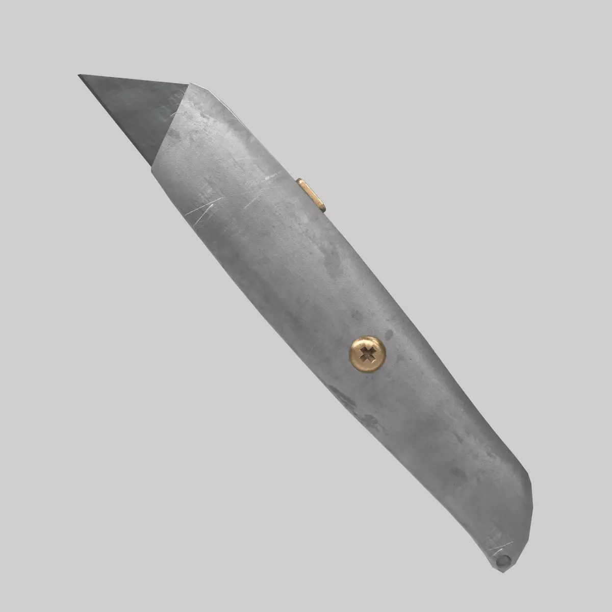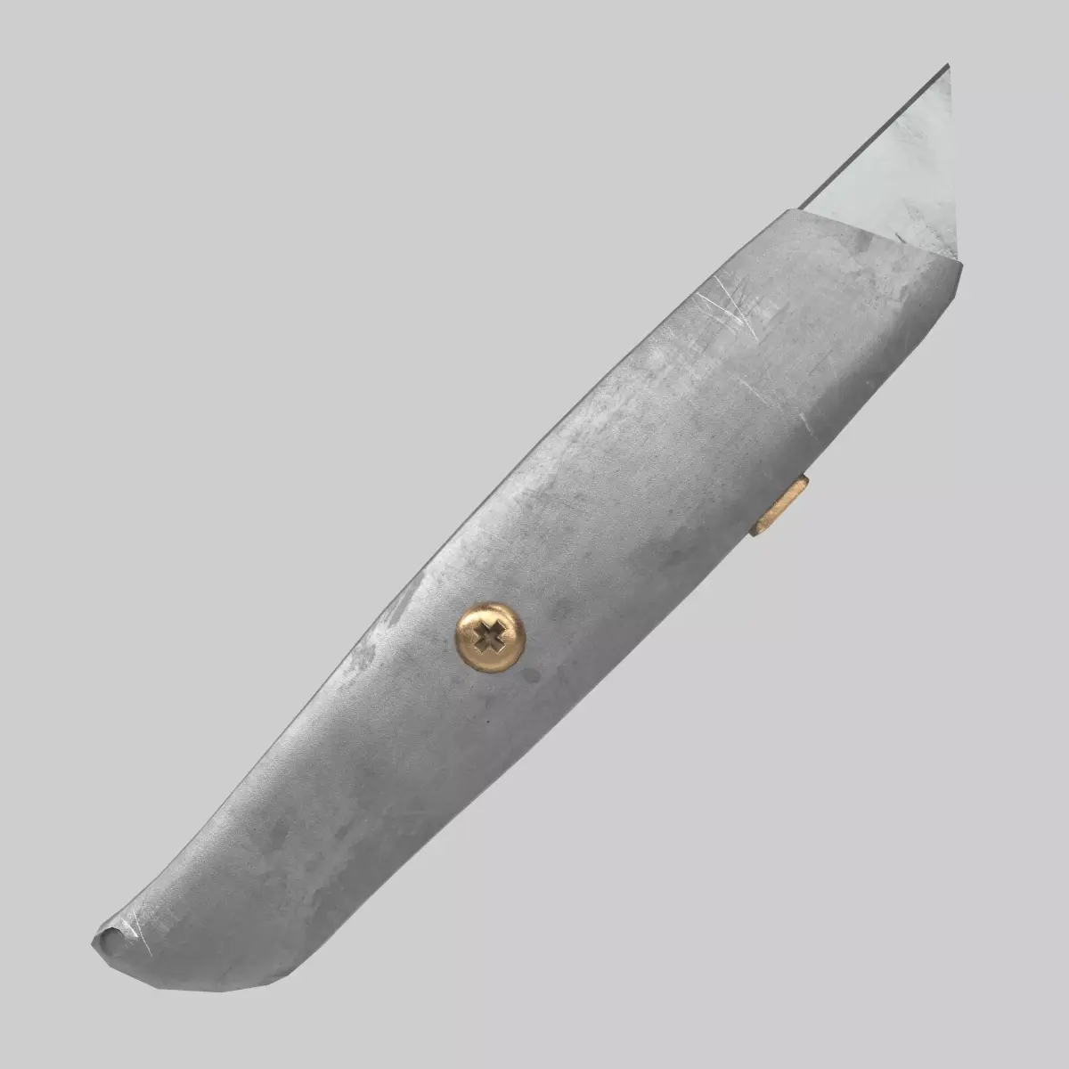 A realistic Electrician Knife / Utility Knife 3D model featuring a metallic handle, brass screw detailing, and a sharp industrial steel blade. Designed with accurate wear, scratches, and surface imperfections to give it an authentic used-tool appearance.