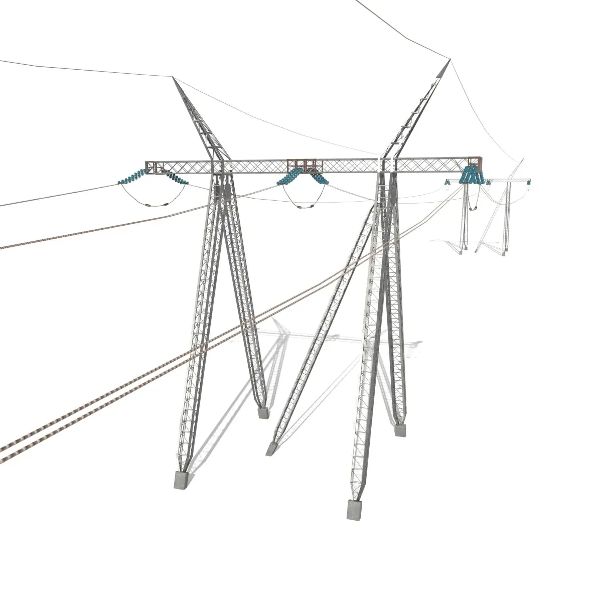 Electricity poles model built in Blender and rendered with Cycles, with PBR materials, Game-Ready. The setup is built of 3 poles with cables between, ideal for seting up arrays.