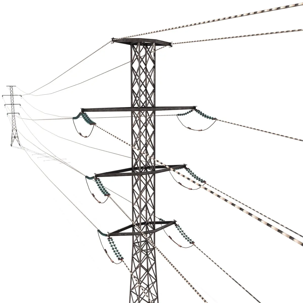 Electricity poles model built in Blender and rendered with Cycles, with PBR materials, Game-Ready. The setup is built of 3 poles with cables between, ideal for seting up arrays.