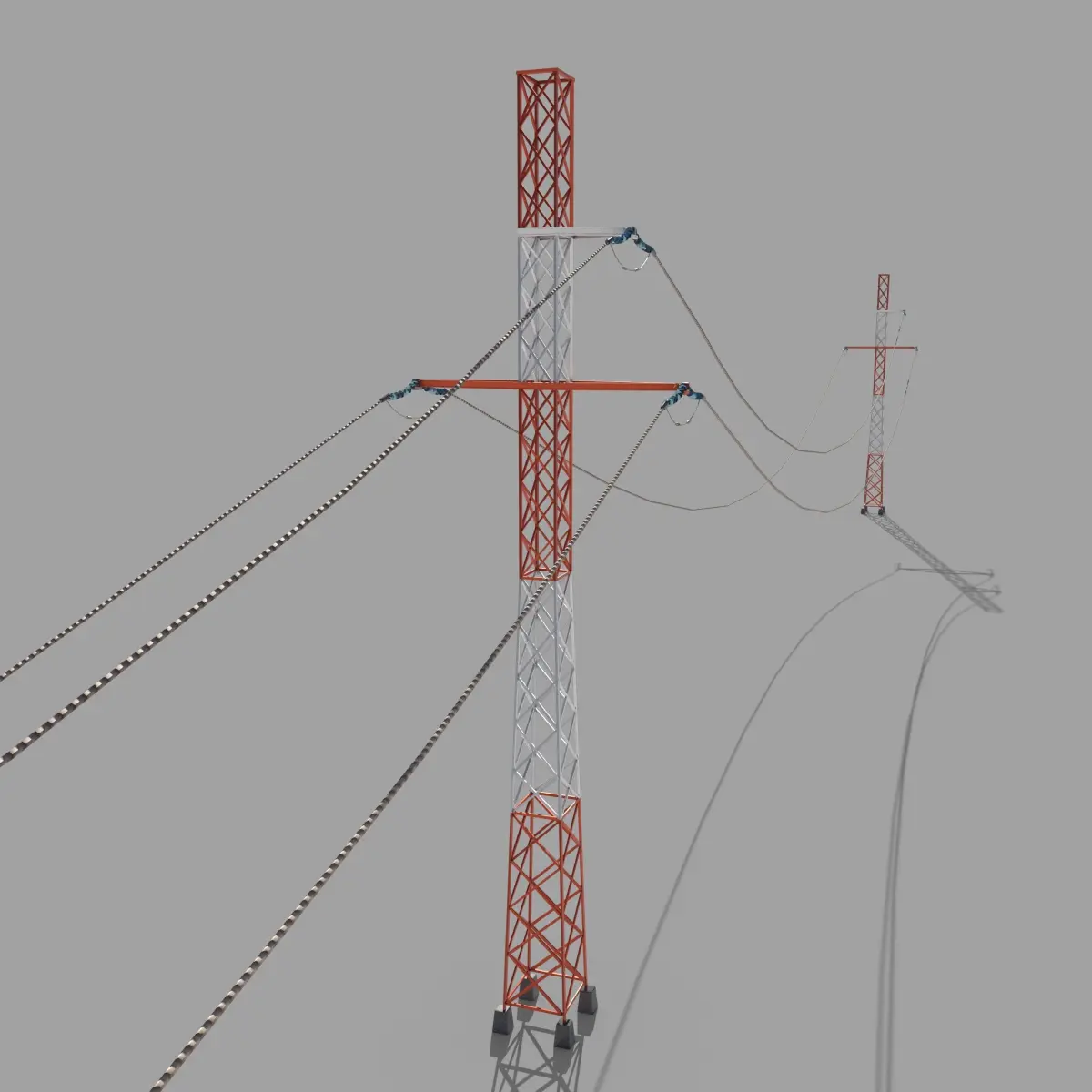 Electricity poles model built in Blender and rendered with Cycles, with PBR materials, Game-Ready. The setup is built of 3 poles with cables between, ideal for seting up arrays.
