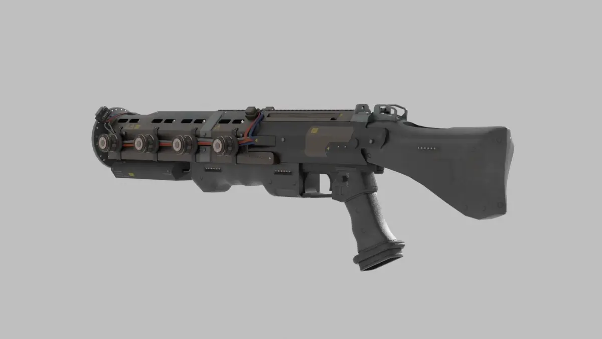 Electromagnetic Gun, a weapon capable of firing electromagnetic pulses.Ideal for a FPS shooter video game.