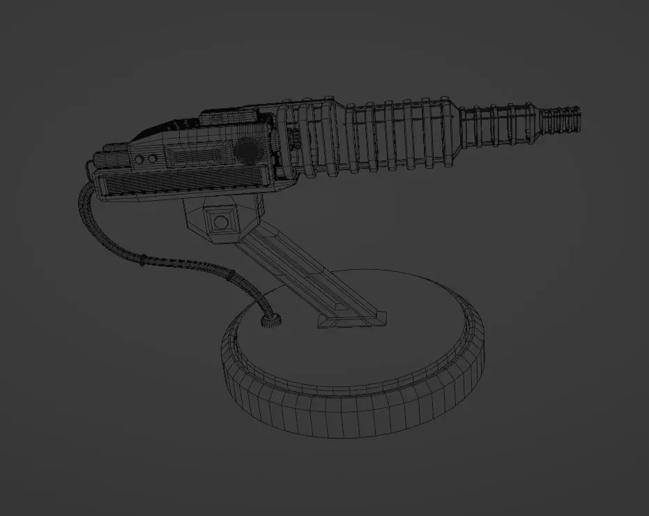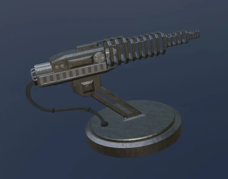 An electromagnetic gun that fires a beam of electromagnetic waves. Installed on spaceships.Vertices 62608Faces 61324