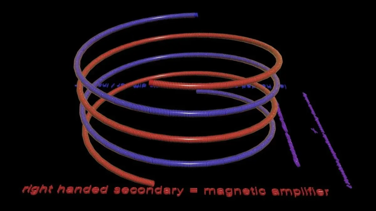 the right handed rule suggests that if we wind the secondary coil with the current of the mains electric current flow, we amplify the magnetic field with the extra secondary coil winding.