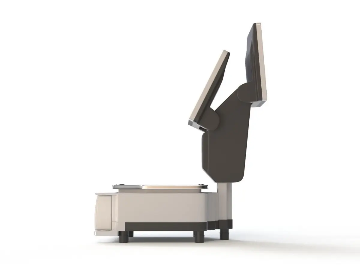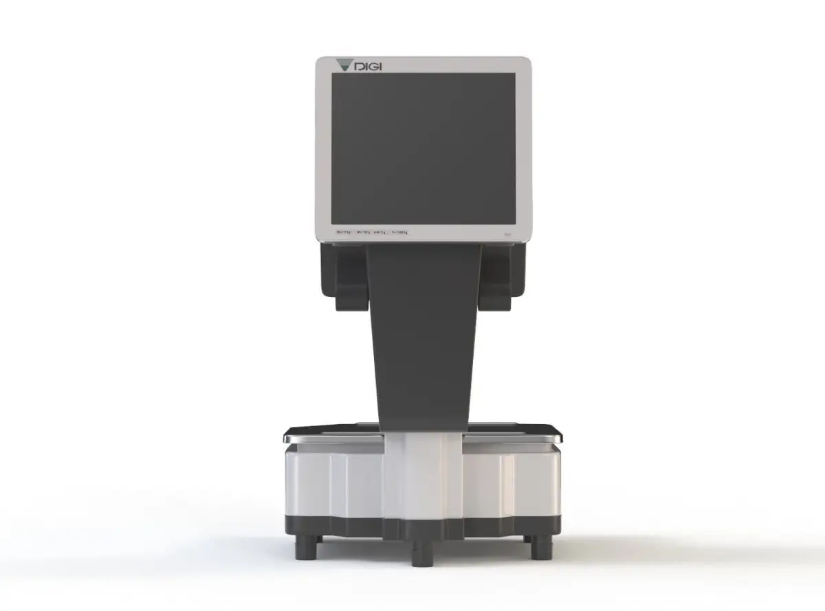 Industrial electronic market scale. Featuring two large LCD displays. Pivotal points of display objects are positioned so you can easily rotate displays about their axles. Scene contains 19 objects, which are grouped in max file.