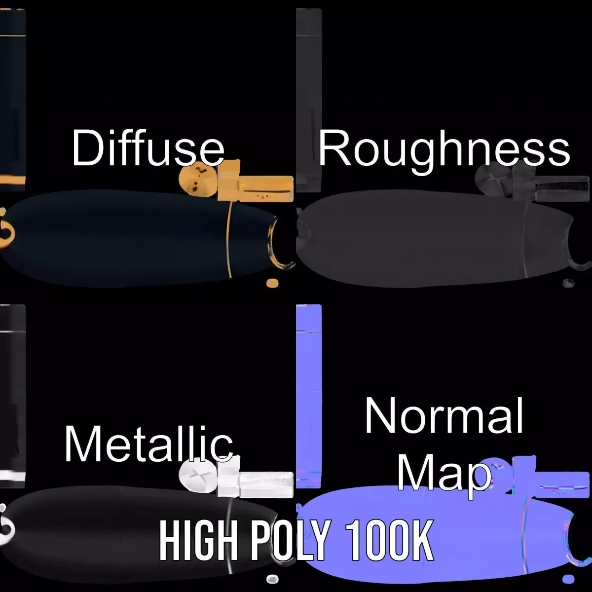 The Elegance Black Fountain Pen model pack offers a high-quality 3D representation of a classic writing instrument. Each model in this pack is crafted with meticulous attention to detail, showcasing a sleek black body with a luxurious gold nib. This model is ideal for use in product simulations, interior visualizations, or educational tools. Each model has 3 levels of detail: low-poly (1000 triangles for mobile), middle-poly (10,000 triangles for environment), and high-poly (100,000 triangles), which allows for the use of this model in production rendering (such as 3ds Max, Maya, Cinema4D, Blender, Vray/Corona/Cycles and all other), game engines (Unity and Unreal compatible), and interactive presentations, providing a choice of detail based on the LOD System principle. The model's textures are PBR, Diffuse, NormalMap, and reflection/roughness/metallic, which are suitable for any modern rendering engine. All models accurately unwrapped and have no overlapping UV. All textures are 4096*4096 in size. Please like and leave a comment if you enjoyed this model.