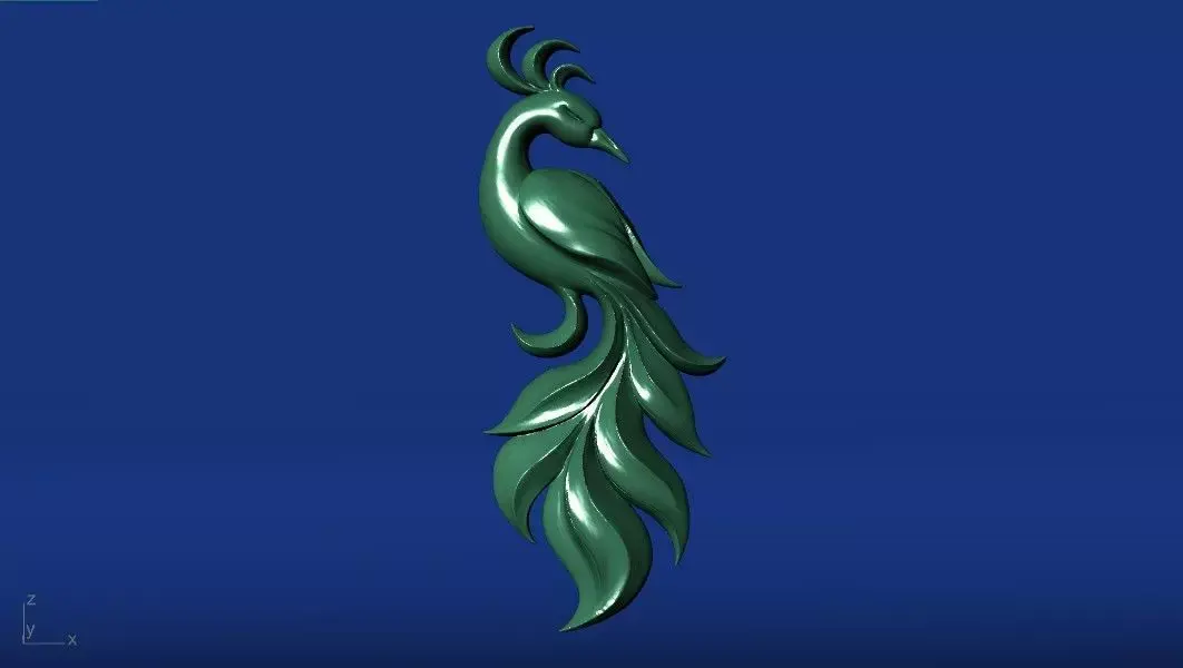 A luxurious and artistic 3D model of a golden peacock, designed with graceful curves and elegant flow.