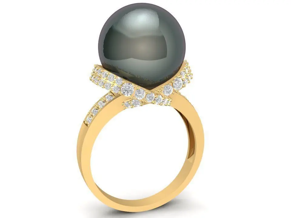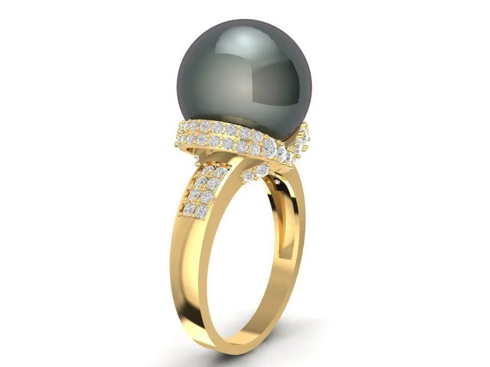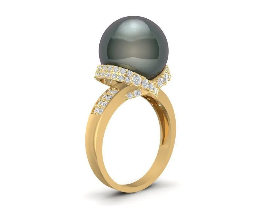 This Elegant Black Pearl Diamond Ring 3D model features a captivating round black pearl gracefully mounted on a pavé diamond crown setting. The combination of deep pearl luster and sparkling diamonds exudes luxury, mystery, and timeless femininity.