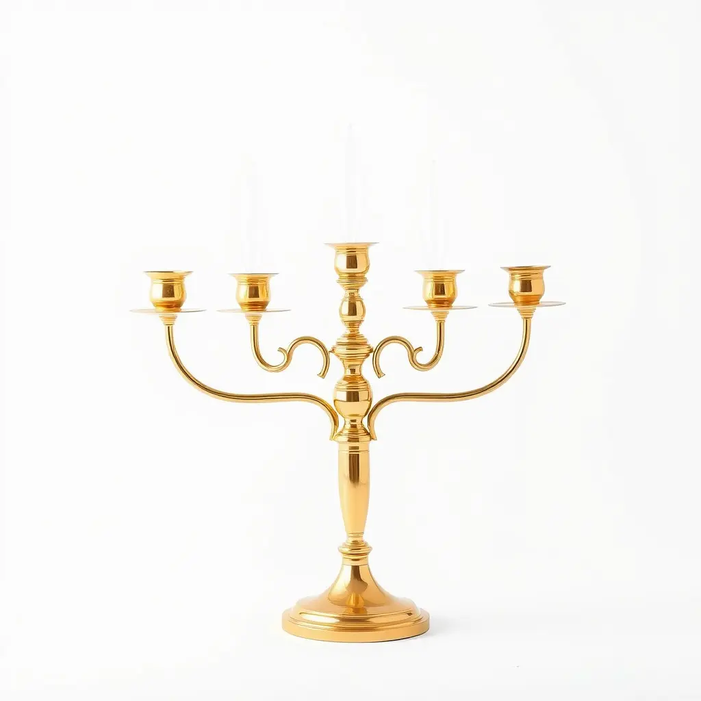 This model is perfect for scenes requiring an elegant aesthetic, such as festive environments, historical recreations, or luxurious interiors. The polished brass finish enhances its realistic appearance, making it suitable for both close-up shots and background decor.