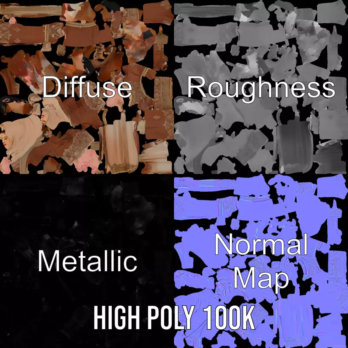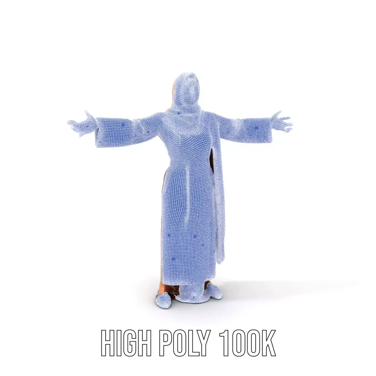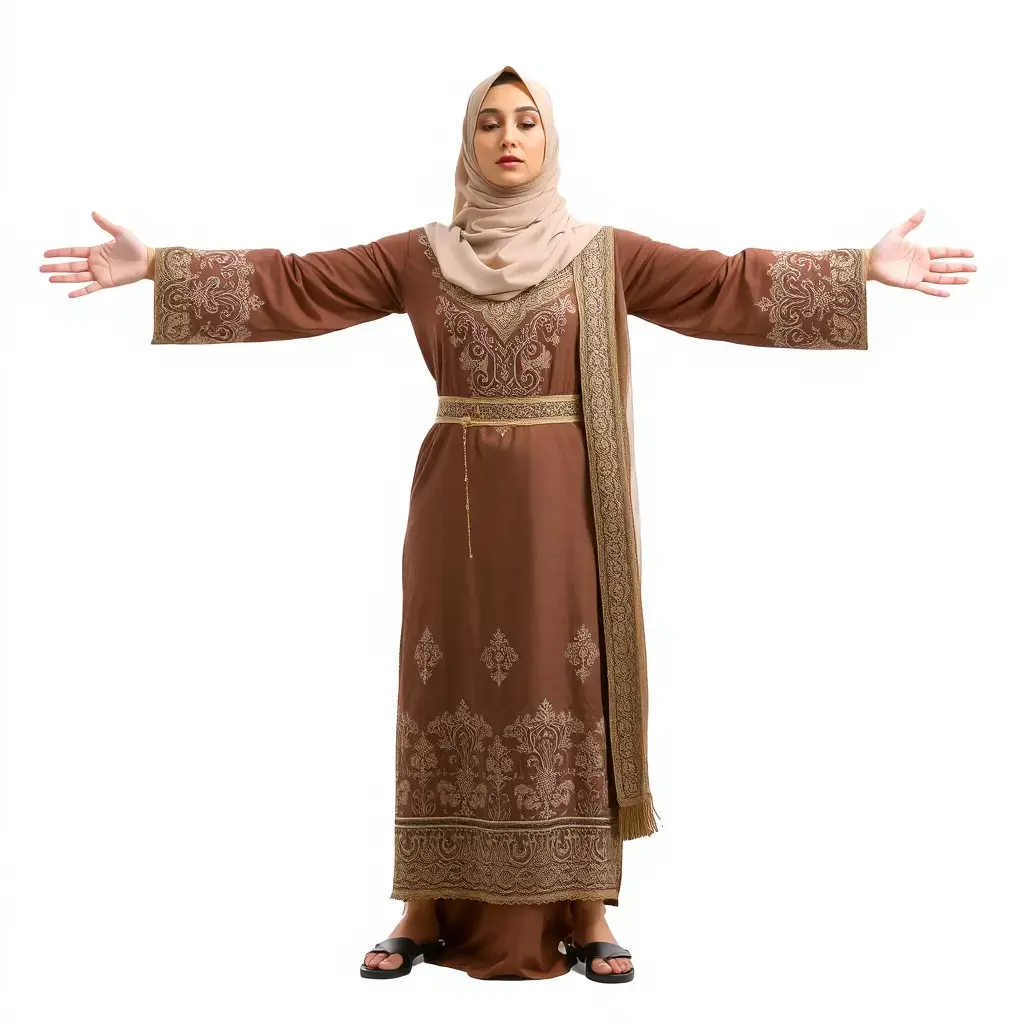 This 3D model represents an elegant brown abaya, detailed with intricate patterns, perfect for cultural and fashion visualization. Each model has 3 levels of detail: low-poly (1000 triangles for mobile), middle-poly (10,000 triangles for environment), and high-poly (100,000 triangles), which allows for the use of this model in production rendering (such as 3ds Max, Maya, Cinema4D, Blender, Vray/Corona/Cycles and all others), game engines (Unity and Unreal compatible), and interactive presentations, providing a choice of detail based on the LOD System principle. Ideal for use in fashion design, virtual fitting rooms, and cultural presentations. The model's textures are PBR, Diffuse, NormalMap, and reflection/roughness/metallic, which are suitable for any modern rendering engine. All models are accurately unwrapped and have no overlapping UV. All textures are 4096x4096 in size. If you enjoyed this model, please like and leave a comment.