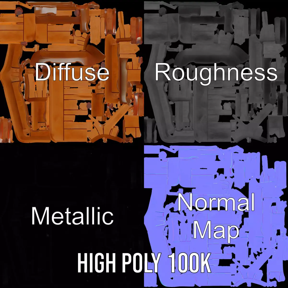 The table's elegant curves and polished finish make it an ideal choice for virtual interior design, architectural visualization, and immersive interactive presentations. The model's textures include PBR, Diffuse, NormalMap, and reflection/roughness/metallic, compatible with any modern rendering engine. Every model has accurately unwrapped UVs and no overlap, ensuring high-quality texturing.