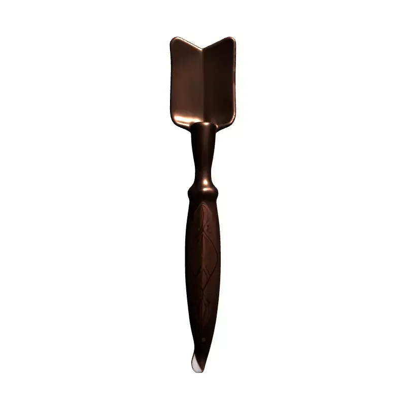 This is a meticulously crafted 3D model of an elegant, decorative garden trowel or scoop, perfect for adding a touch of sophistication to any digital scene. The model features a lustrous copper finish, reflecting light beautifully and enhancing its premium aesthetic. A standout characteristic is the intricately engraved handle, adorned with exquisite foliate patterns that evoke a sense of vintage charm and artistry. This high-detail asset is versatile for a wide range of applications, including realistic architectural visualizations, where it can enrich a luxurious garden, potting shed, or even an interior setting. It's also ideal for product rendering, showcasing its refined design. For game developers and AR/VR creators, this model can serve as a unique prop in historical, fantasy, or even survival-themed environments, enhancing immersion with its detailed craftsmanship. The model is built with clean topology, ensuring smooth deformations if rigged, and is fully UV unwrapped for easy texture application and customization. It comes optimized with PBR (Physically Based Rendering) textures for realistic material representation across various rendering engines. Supported file formats typically include GLB, OBJ, FBX, USD, and DAE, making it highly compatible with most 3D software and game engines. This model is suitable for both static high-quality renderings and can be optimized for real-time applications, offering flexibility without compromising visual fidelity.