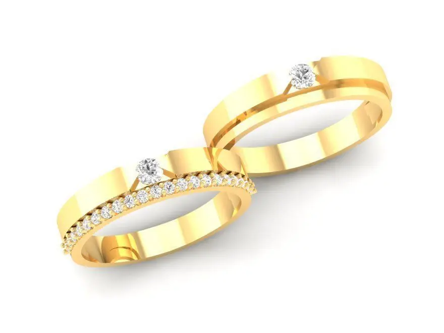 The male ring presents a subtle, solid look while the female ring adds extra sparkle, symbolizing unity and everlasting love.
