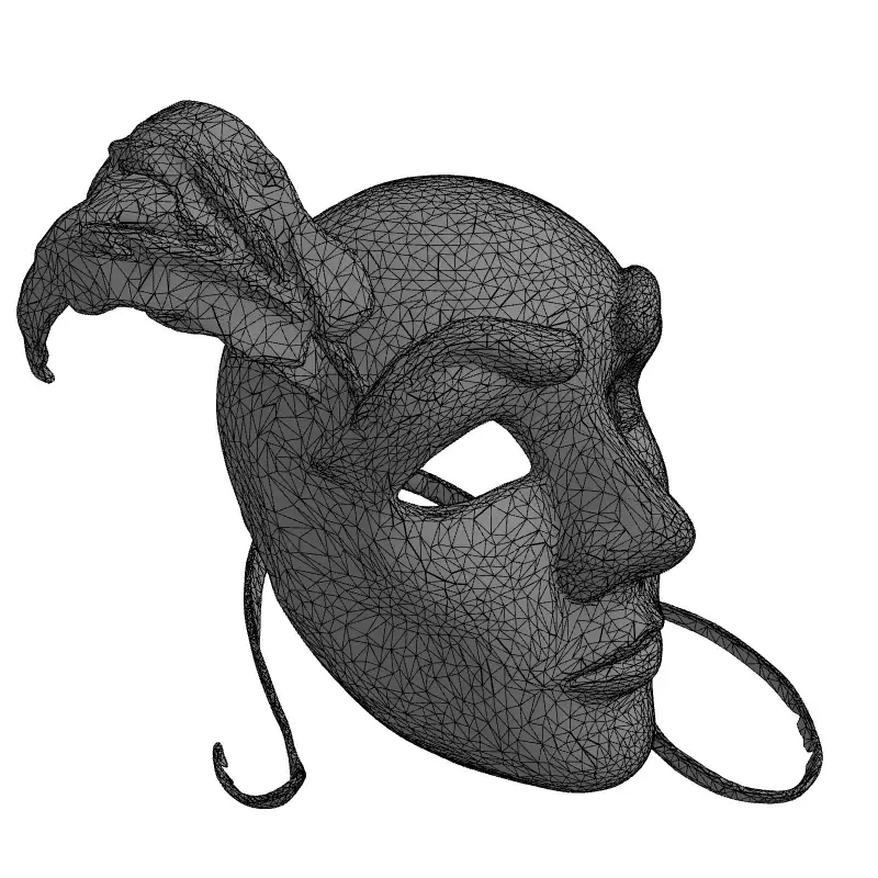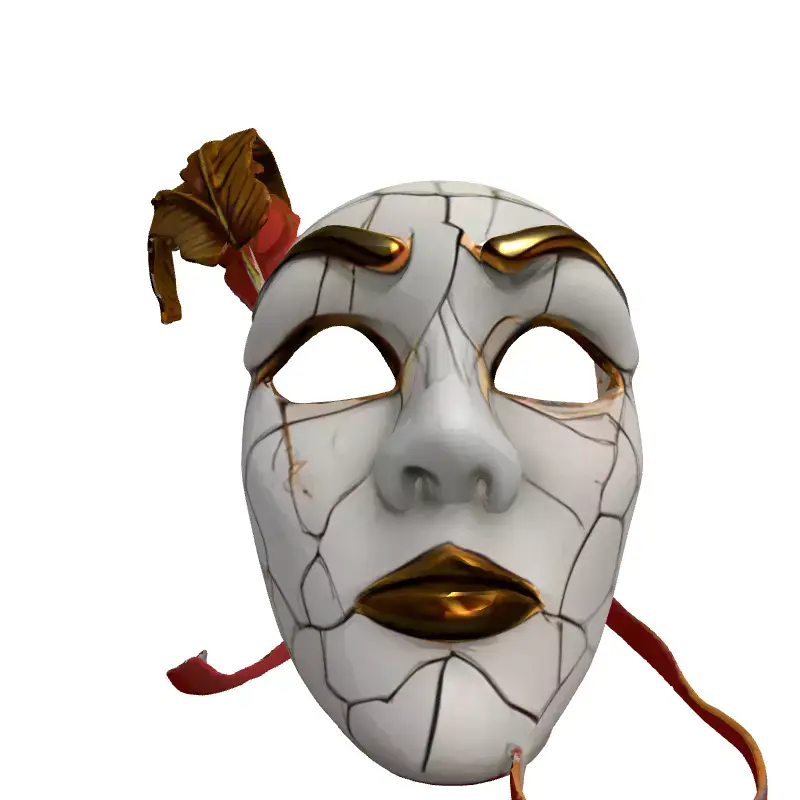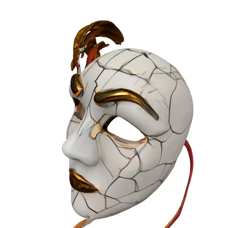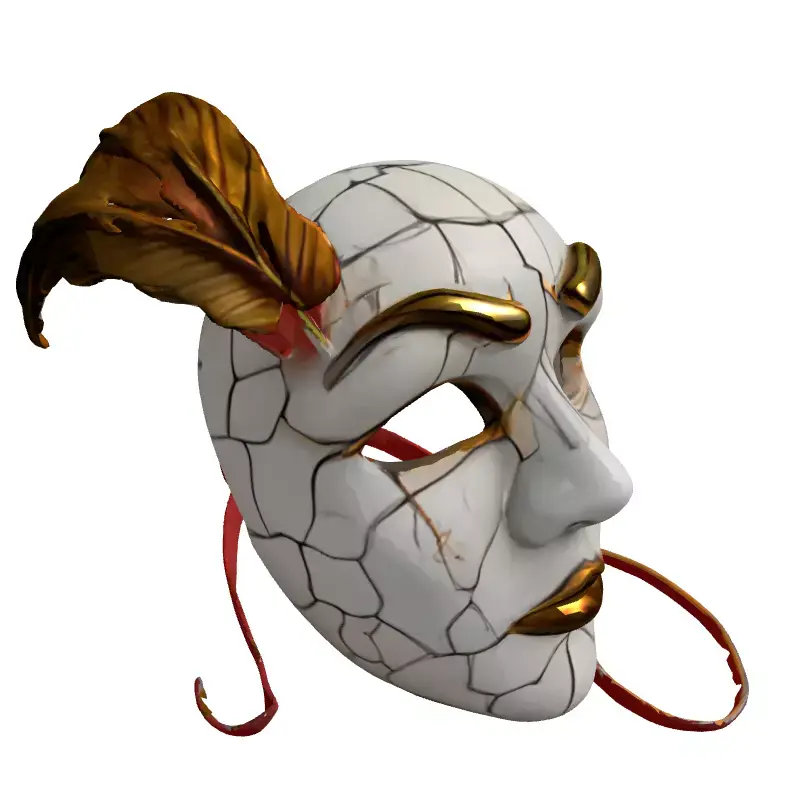 This exquisitely detailed 3D model represents an elegant masquerade mask, featuring a distinct cracked texture that conveys an antique or weathered aesthetic. Adorned with striking golden accents on the eyebrows, lips, and a pair of sophisticated golden feathers, the mask evokes a sense of mystery and vintage charm. A delicate red ribbon ties complete its opulent look, making it a captivating visual element. This versatile asset is ideal for a wide range of creative projects, including immersive game development, where it can serve as a unique prop for characters in fantasy, historical, or even horror settings. It is also perfectly suited for architectural visualization as a sophisticated decorative element in lavish interiors, or for enhancing digital art and animation scenes. Furthermore, its intricate design makes it an excellent candidate for augmented reality (AR) and virtual reality (VR) applications, providing a rich, interactive experience. For those interested in physical creations, the model can be prepared for high-quality 3D printing, ideal for cosplay or decorative pieces. The model is meticulously crafted with clean topology, ensuring smooth deformations if rigged, and is fully UV unwrapped for easy texture application. It features high-resolution PBR textures, providing realistic material rendering for superior visual fidelity. Optimized for both static renders and potential real-time use, it supports various file formats including GLB, OBJ, STL, ABC, DAE, FBX, USD, and PLY, ensuring broad compatibility across different 3D software and engines.