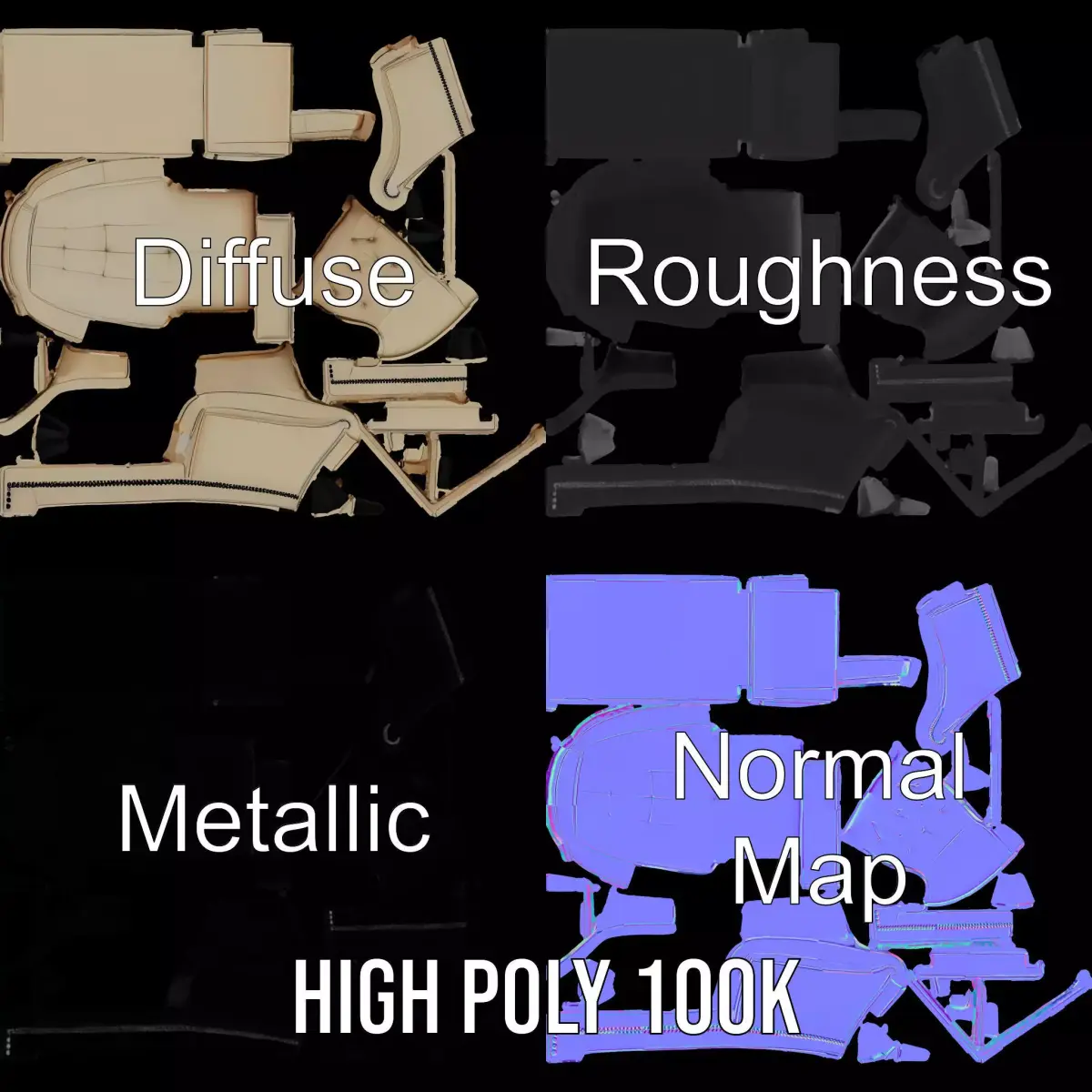 The Elegant Cream Chaise model pack captures the essence of luxury and comfort with its sophisticated design. Each model has 3 levels of detail: low-poly (1000 triangles for mobile), middle-poly (10,000 triangles for environment), and high-poly (100,000 triangles), which allows for the use of this model in production rendering (such as 3ds Max, Maya, Cinema 4D, Blender, Vray/Corona/Cycles), game engines (Unity and Unreal compatible), and interactive presentations, providing a choice of detail based on the LOD System principle. Perfect for interior design visualizations, game stages, or any elegant setting seeking a touch of class. The model's textures are PBR, including Diffuse, NormalMap, and reflection/roughness/metallic maps, suitable for any modern rendering engine. All models are accurately unwrapped and have no overlapping UVs. All textures are 4096*4096 in size. Please like and leave a comment for the model if you liked it.