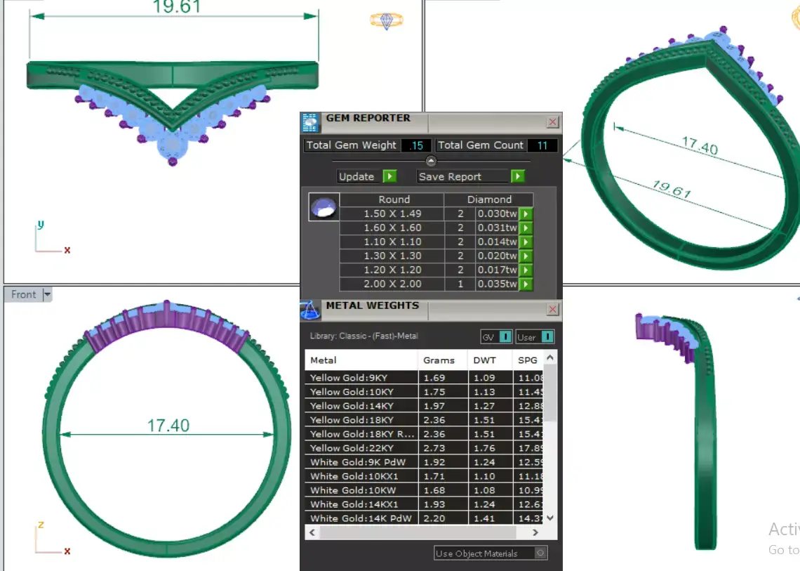 Elegant Two-Tone RenderingShown in rose gold and white stone settings (materials for display only — STL is untextured).
