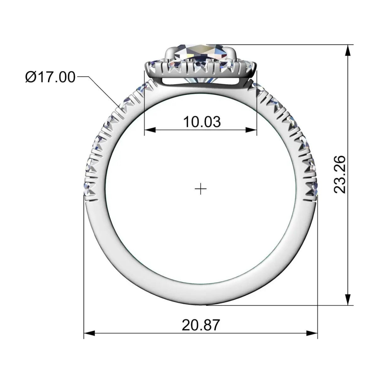 Modern and Classy Elegant Engagement Ring with a Cushion Shaped Central Halo ready for 3d printing.