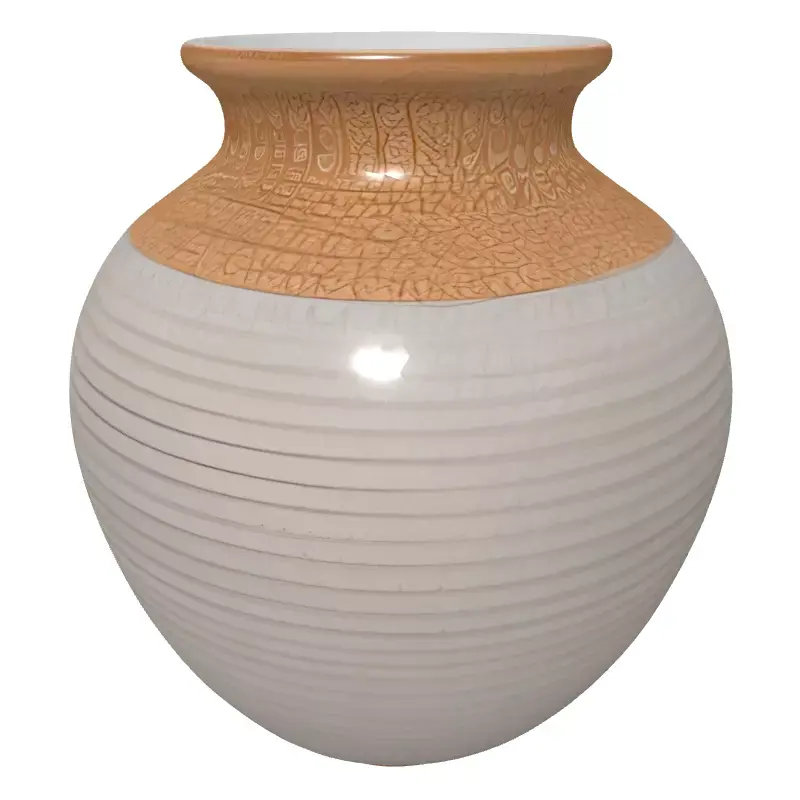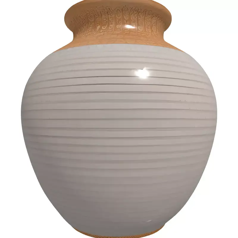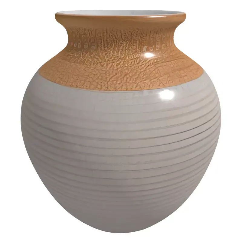 This exquisitely crafted 3D model represents a modern decorative ceramic vase, perfect for enhancing any virtual interior or architectural scene. The vase features a sophisticated, organic shape with a distinct two-tone texture, showcasing a natural unglazed clay finish on the upper neck and a refined white, glazed appearance on the main body. Both sections are adorned with an intricate, embossed geometric pattern that adds depth and visual interest, making it a captivating focal point. Ideal for a multitude of applications, this model can be seamlessly integrated into architectural visualization projects, realistic interior design renders, or as a sophisticated prop in game environments. Its high level of detail and clean, optimized topology make it suitable for both static renders requiring photorealistic quality and real-time applications such as AR/VR experiences, where performance is key. The model comes fully UV unwrapped with meticulously crafted PBR (Physically Based Rendering) textures, ensuring accurate material representation under various lighting conditions. The asset is designed for ease of use and maximum compatibility across different 3D software and engines. It includes support for industry-standard file formats such as GLB, OBJ, STL, ABC, DAE, FBX, USD, and PLY, providing flexibility for any workflow. Whether you are populating a detailed living room scene, creating a stunning product showcase, or developing an immersive virtual reality experience, this elegant vase offers exceptional quality and versatility, ready to drop into your project and elevate its aesthetic. Its intricate design and realistic textures are sure to impress.