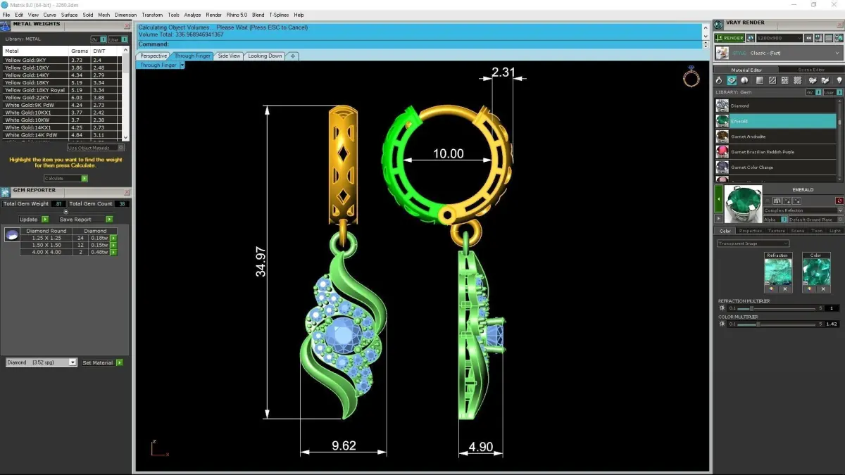 Each element is modeled with precision, including exact gemstone sizes, metal weight, and technical proportions, making it ideal for jewelry production, 3D printing, or visualization.