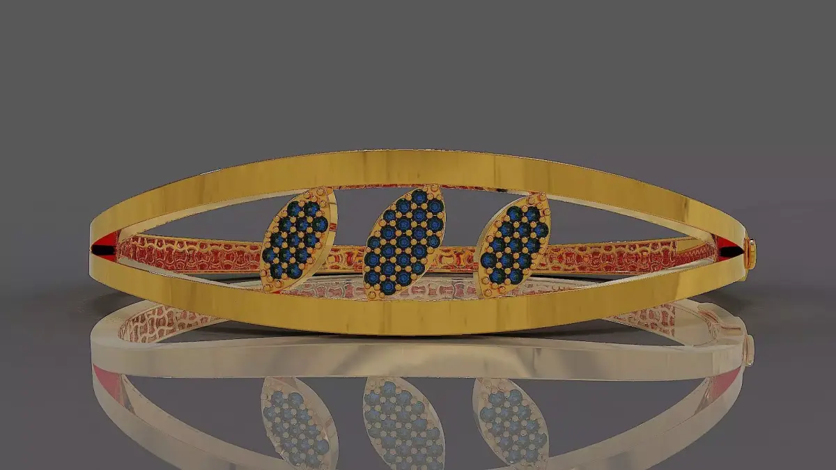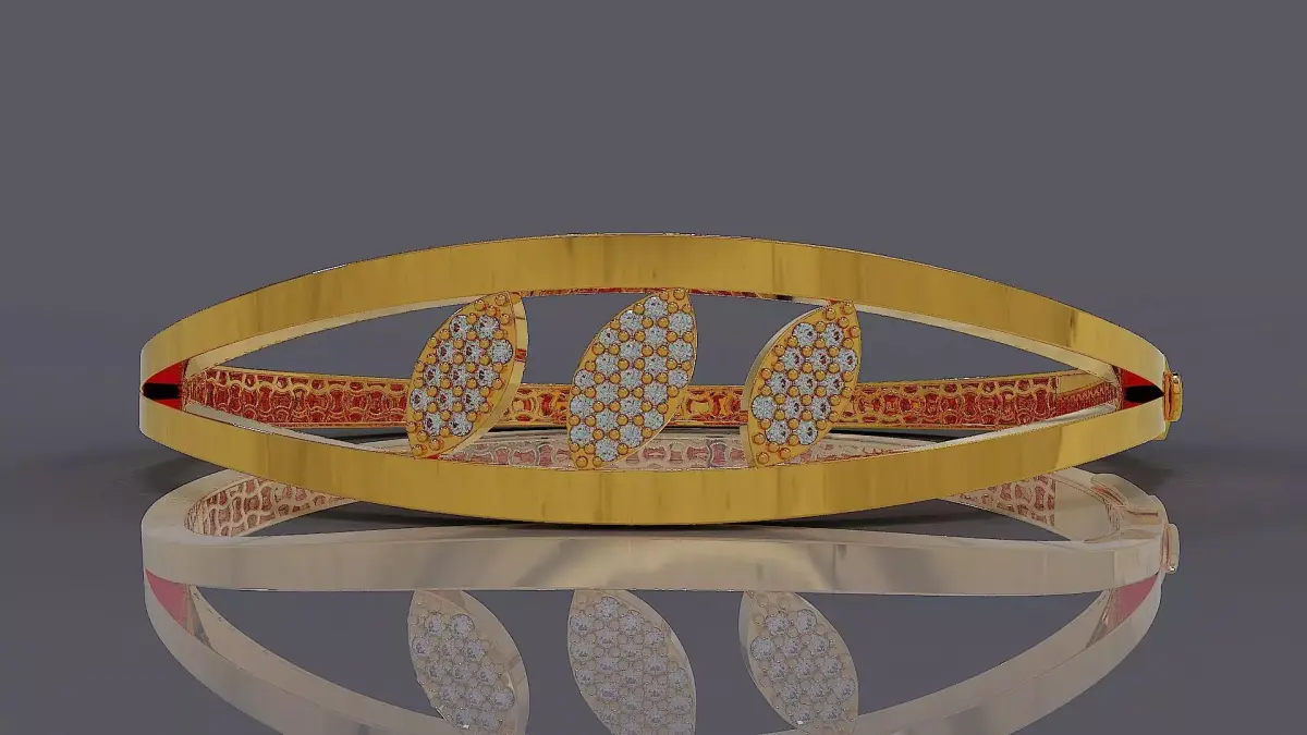 Feel the whisper of nature’s grace against your skin—a bracelet where two polished bands embrace three radiant leaf clusters, each one a constellation of light, meticulously set to shimmer like morning dew on petals. This isn’t mere adornment; it’s a silent poem of elegance, crafted for the woman who carries quiet confidence and timeless allure in every step she takes. Let its gentle curves and sparkling pavé leaves become an extension of your spirit—bold yet tender, modern yet eternal, turning every gesture into a moment of quiet celebration. More than a 3D model, it’s a dream rendered tangible—an invitation to wear your story, your strength, your beauty… forever luminous, forever yours. Final weight of bracelet extracted from Matrix Gold software for all precious metals is shown in the images. Rail size of bracelet also exsit in pictures. 47 round cut stones were utilized in this bracelet. Thickness of bracelet is 0.4 mm. To bring the final design to life, the renderings are crafted using a rich selection of premium materials—including diamond, emerald, ruby, sapphire, rose gold, white gold, and yellow gold—offering a vivid, realistic vision of the ring’s beauty in diverse luxurious interpretations. Discover the full expression of my artistry—each piece in my gallery is crafted to inspire and endure. This bracelet is customizable—just share your desired details, and I’ll expertly design the model to bring your vision to life.