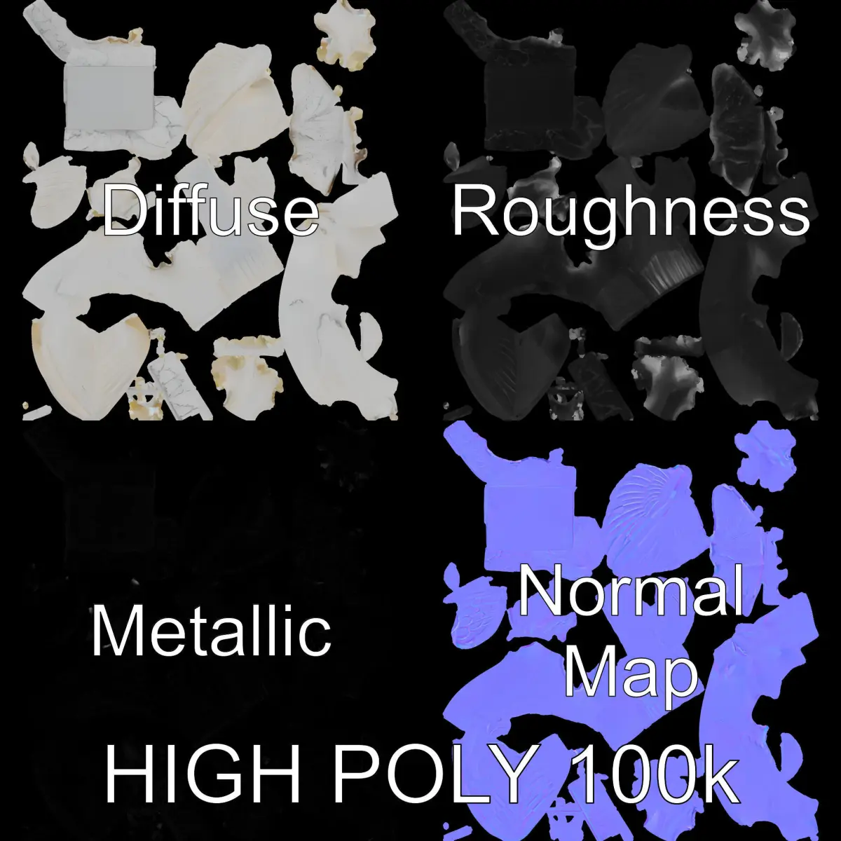 This sophisticated dove statue 3D model pack comes with three levels of detail: low-poly (1000 triangles) for mobile applications, middle-poly (10,000 triangles) for environmental contexts, and high-poly (100,000 triangles) for production rendering—ideal for use in 3ds Max, Maya, Cinema 4D, Blender, and more. Compatible with Unity and Unreal engines, it is perfect for interactive presentations and detailed scenes. The model features 4096*4096 size PBR textures, including Diffuse, Normal Map, and Reflection/Roughness/Metallic maps, suitable for modern rendering engines. Every model is accurately unwrapped with no overlapping UVs.