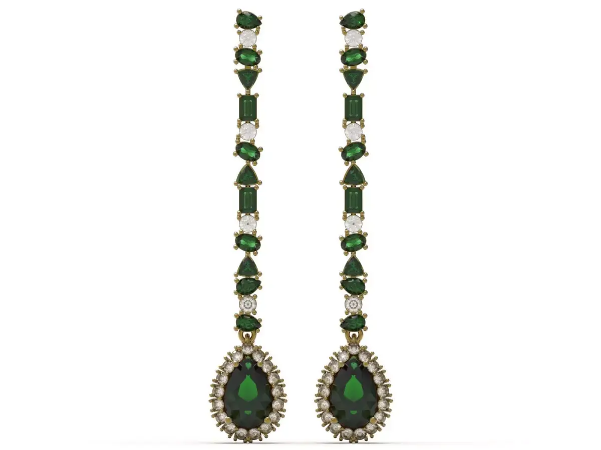 Elegant Green Emerald and Diamond Earrings – Ready for 3D Printing