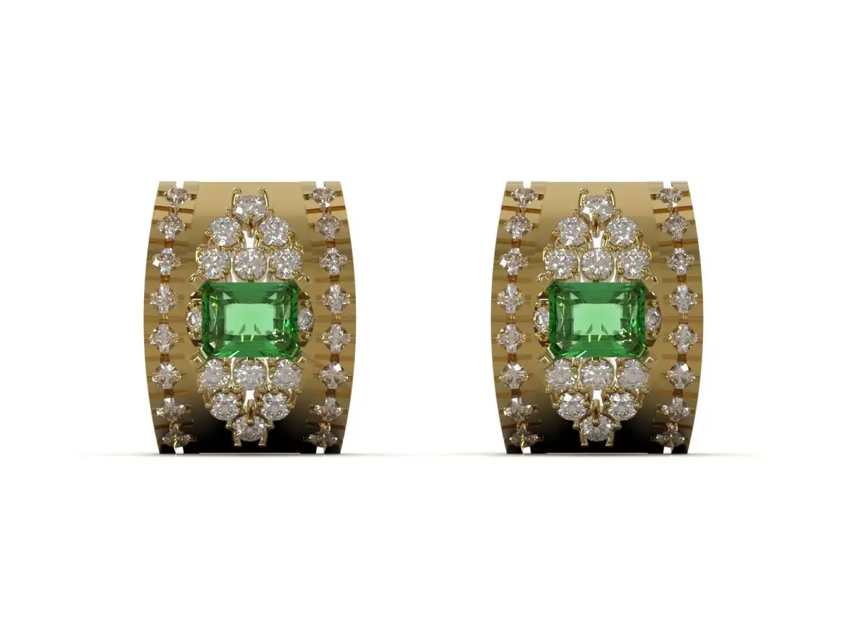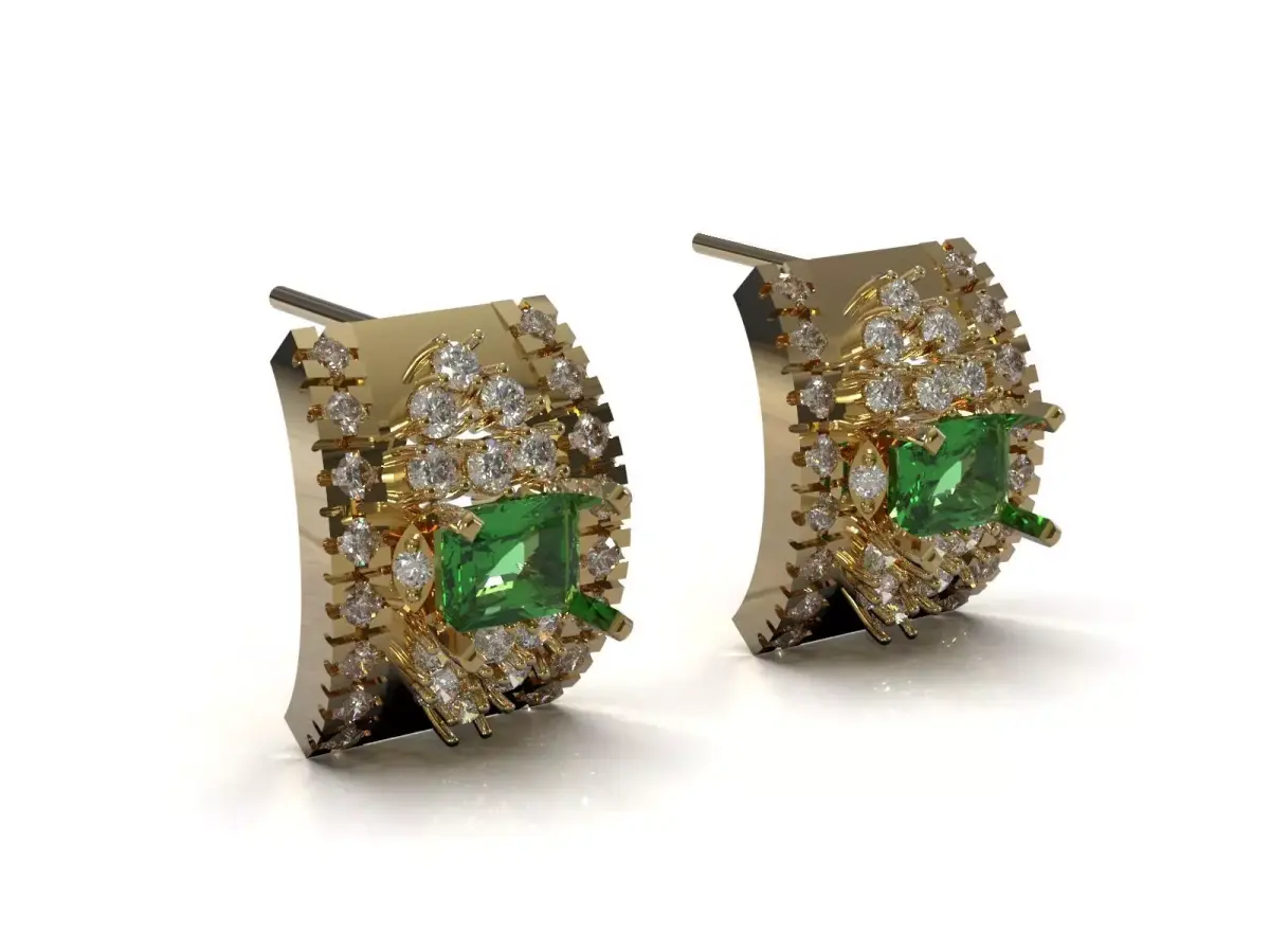 Elegant Green Emerald and Diamond Earrings – Ready for 3D Printing