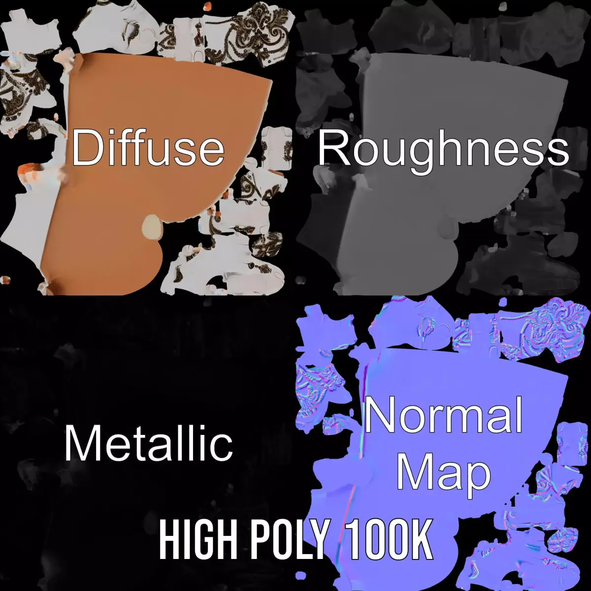 This Elegant Embroidered Glove Model Pack features a beautifully crafted glove with intricate embroidery patterns, ideal for fashion design visualizations, costume concept development, and accessory prototypes in digital environments. Each model has 3 levels of detail: low-poly (1000 triangles for mobile), middle-poly (10,000 triangles for environment), and high-poly (100,000 triangles), which allows for the use of this model in production rendering (such as 3ds Max, Maya, Cinema4D, Blender, Vray/Corona/Cycles and all others), game engines (Unity and Unreal compatible), and interactive presentations, providing a choice of detail based on the LOD System principle. The model's textures are PBR, Diffuse, NormalMap, and reflection/roughness/metallic, which are suitable for any modern rendering engine. All models are accurately unwrapped and have no overlapping UV. All textures are 4096*4096 in size. The first image is the reference used for creating the 3D model. It is important to carefully evaluate the quality of the model by examining the preview images that display the topology and polygonal mesh. These previews (WIRE and WEB 3D Preview) clearly demonstrate how accurately the model matches the original reference and how well the geometry has been executed. Please like and leave a comment for the model if you appreciate it.