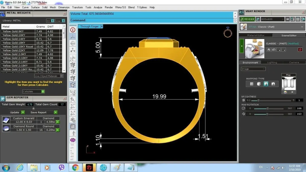 This 3D model is created with high precision, ensuring accurate dimensions and realistic gemstone settings. The file includes all technical details, including weight, measurements, and stone sizes, ready for jewelry manufacturing or 3D printing.