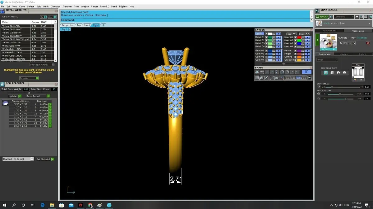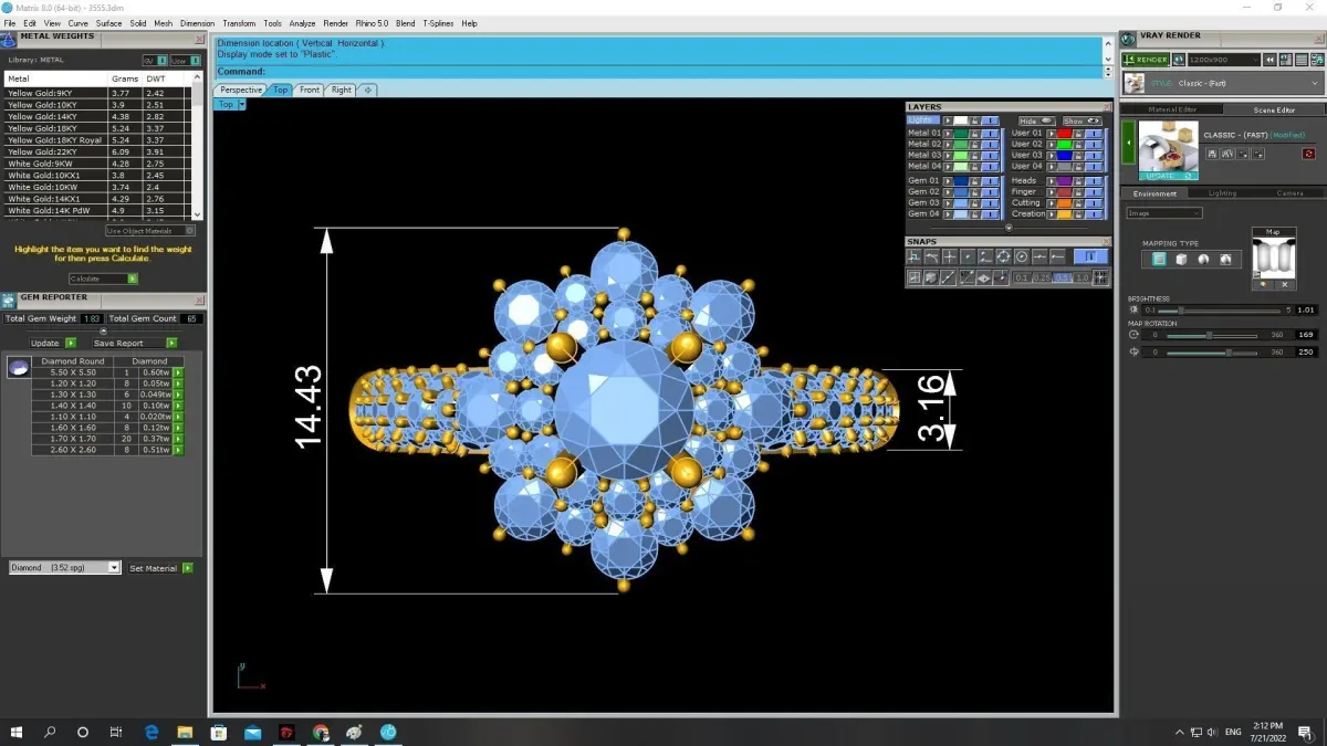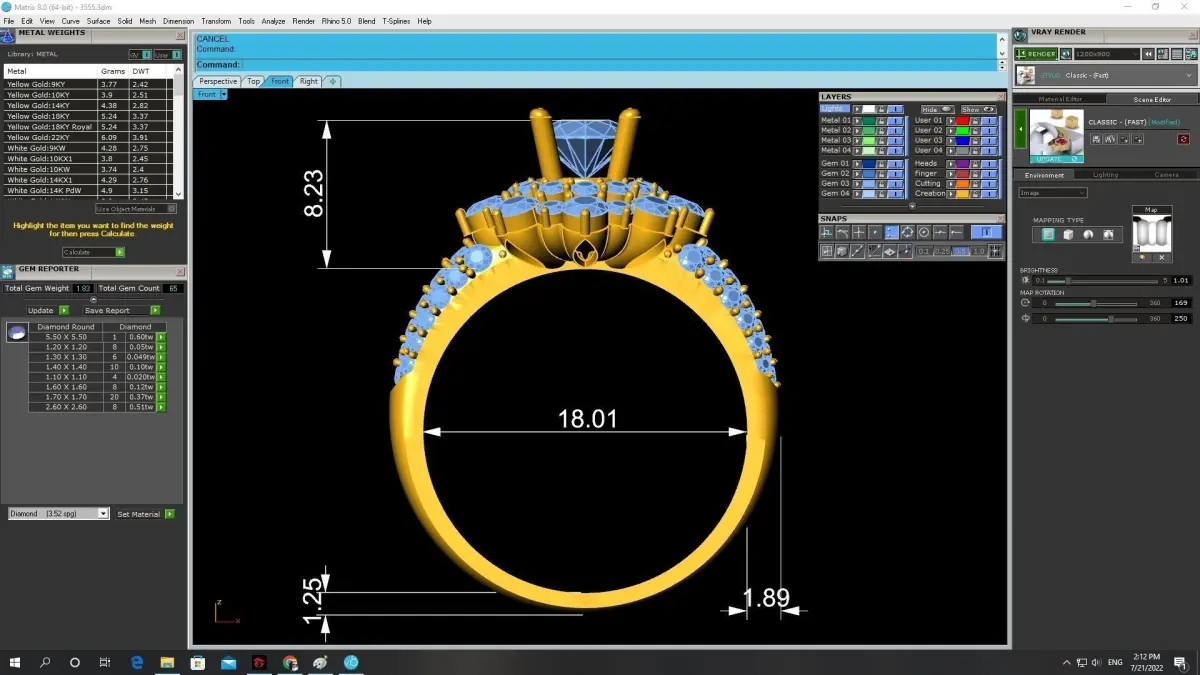 The preview images show all measurements, weight and stone information clearly, helping jewelers verify production specifications before printing or casting.