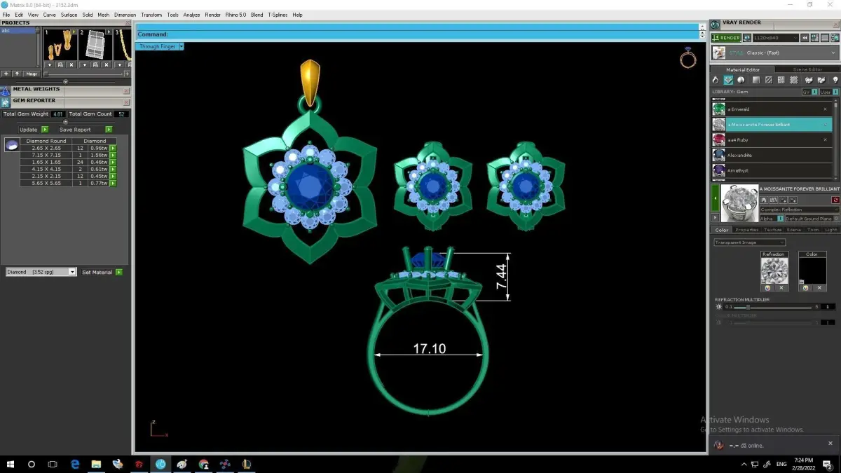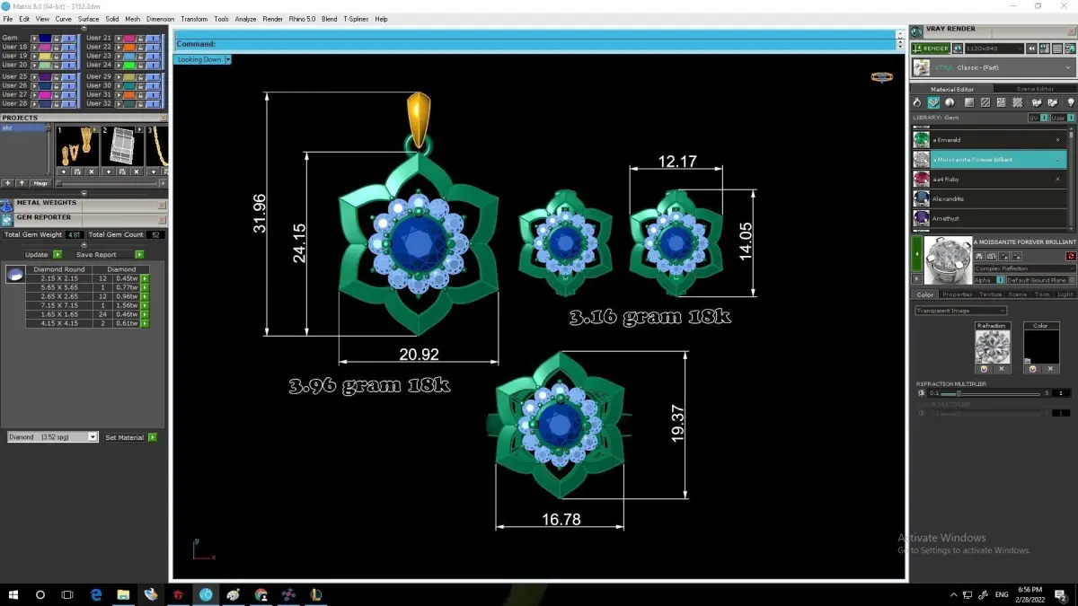 Every component of the set is modeled with precise measurements, accurate gemstone placement, and clean topology for 3D printing and rendering.