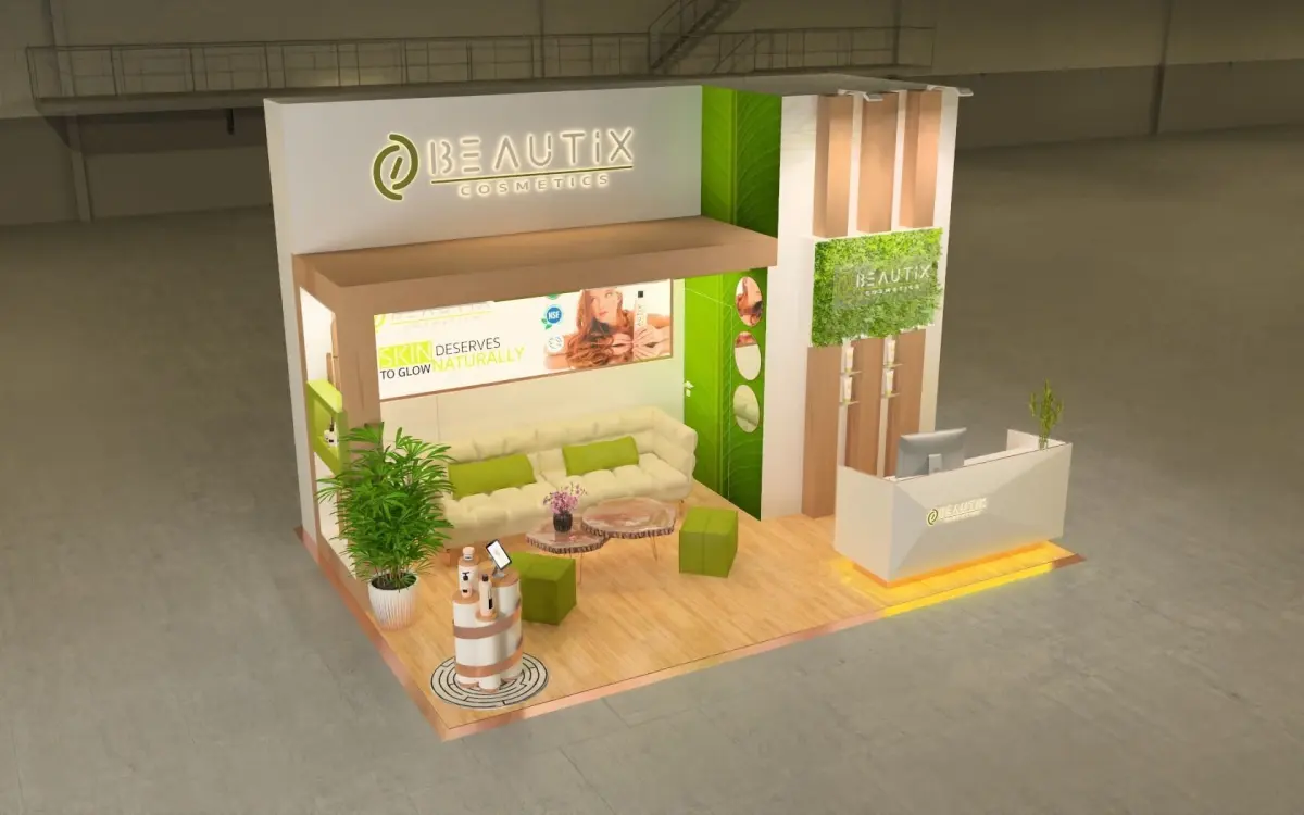 6m x 4m exhibition trade show stand with sitting area storage area reception area