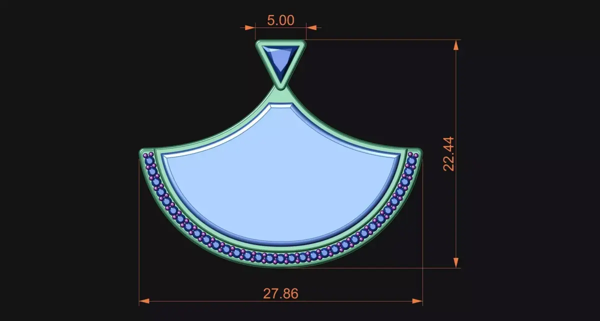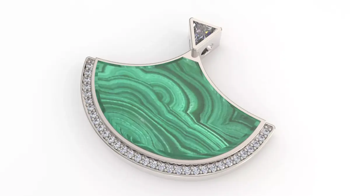 PRODUCT OVERVIEW Presenting a sophisticated and modern Fan-shaped Pendant (Ginkgo style), designed professionally in MatrixGold. This 3D CAD model features a stunning layout optimized for a central stone inlay (Opal, Onyx, or Enamel) bordered by a delicate diamond halo.