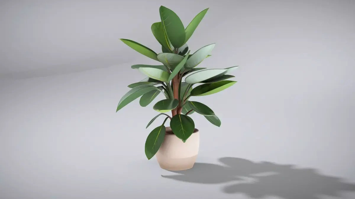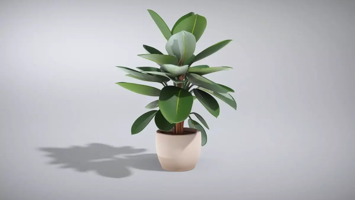 This Ficus elastica rubber plant showcases a robust upright stem and vibrant glossy leaves, ideal for modern interiors. Each model has 3 levels of detail with QUAD polygons: