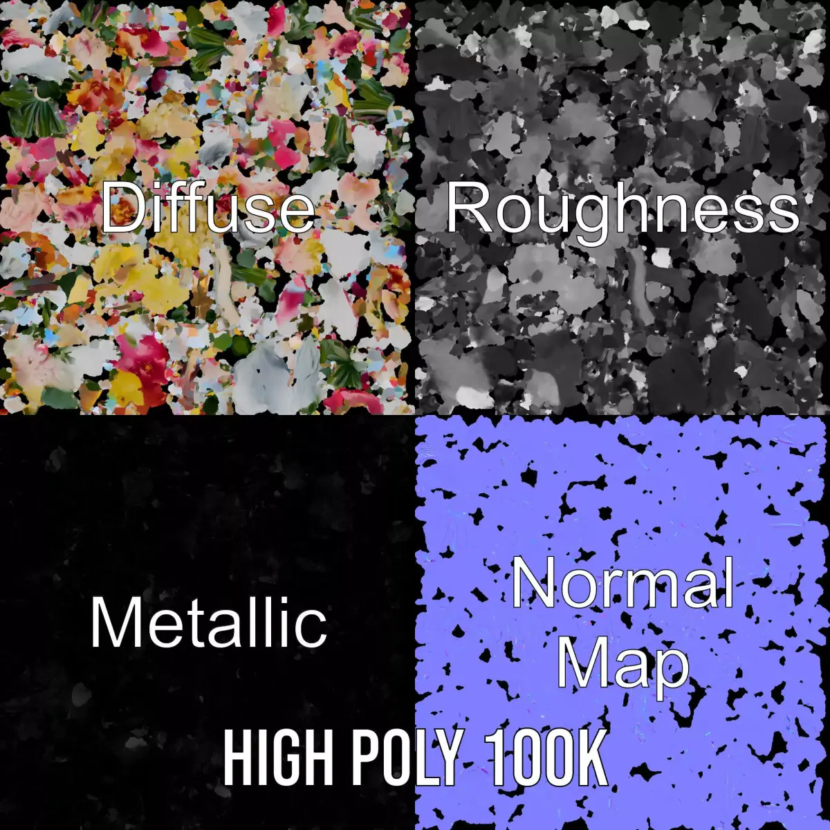 The Elegant Floral Bouquet model pack features a beautifully detailed arrangement of roses, orchids, and greenery, making it perfect for romantic scenes, wedding decor, or nature-themed environments. Each model has 3 levels of detail: low-poly (1000 triangles for mobile), middle-poly (10,000 triangles for environment), and high-poly (100,000 triangles), allowing for use in production rendering (such as 3ds Max, Maya, Cinema4D, Blender, Vray/Corona/Cycles and all others), game engines (Unity and Unreal compatible), and interactive presentations, providing a choice of detail based on the LOD System principle. The model's textures are PBR, Diffuse, NormalMap, and reflection/roughness/metallic, suitable for any modern rendering engine. All models are accurately unwrapped with no overlapping UVs. All textures are 4096*4096 in size. If you like this model, please leave a like and comment!