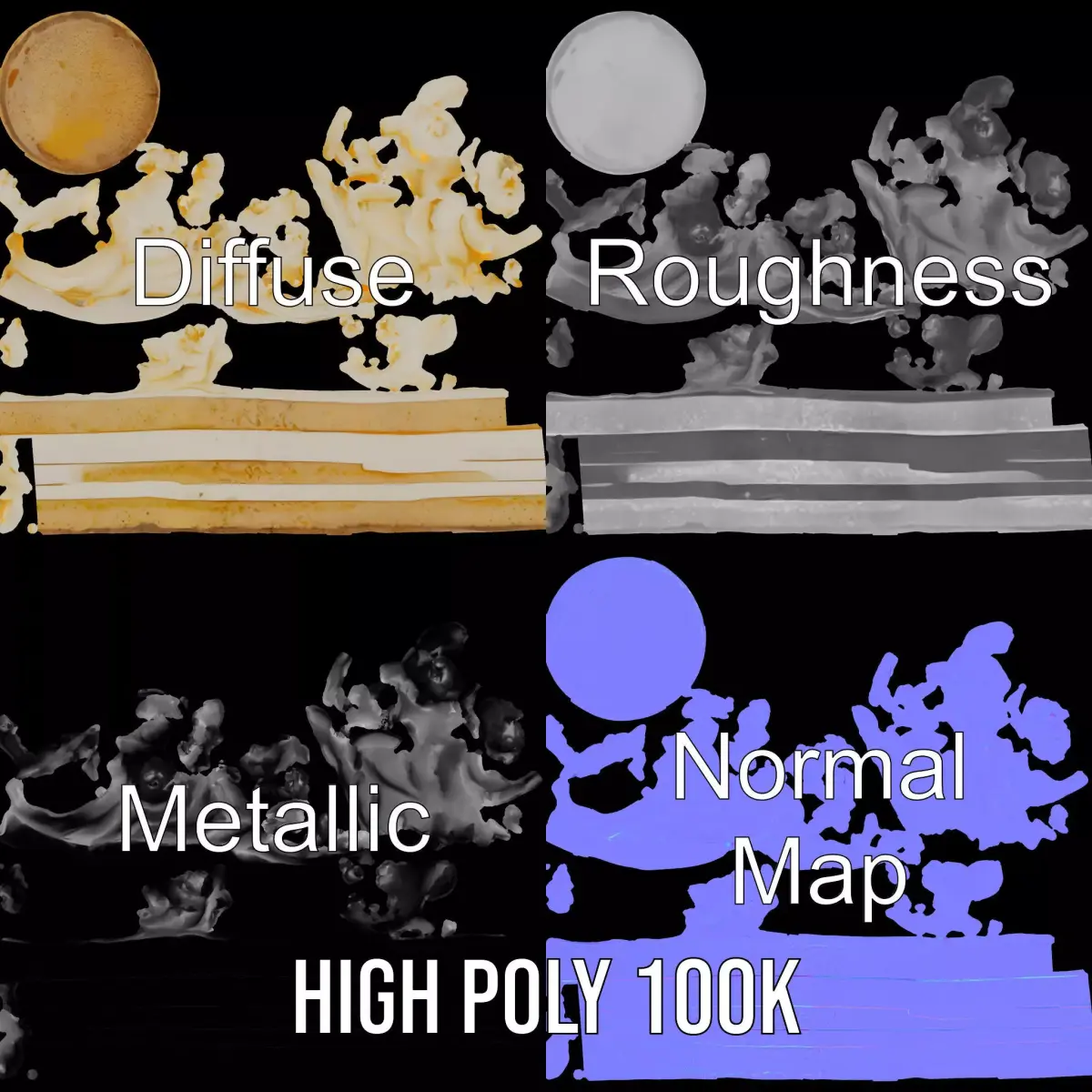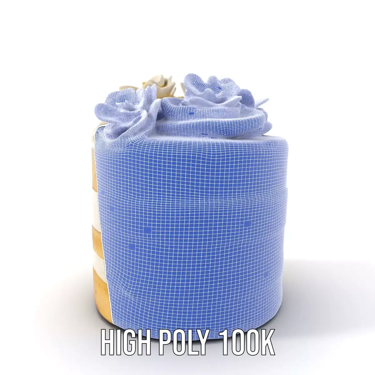 This model pack features a beautifully crafted elegant floral cake with intricate details, making it ideal for use in visualizations, animations, or games that require a touch of sophistication. Each model has 3 levels of detail: low-poly (1000 triangles for mobile), middle-poly (10,000 triangles for environment), and high-poly (100,000 triangles), which allows for the use of this model in production rendering (such as 3ds Max, Maya, Cinema 4D, Blender, Vray/Corona/Cycles and all others), game engines (Unity and Unreal compatible), and interactive presentations, providing a choice of detail based on the LOD System principle. The model's textures are PBR, Diffuse, NormalMap, and reflection/roughness/metallic, suitable for any modern rendering engine. All models are accurately unwrapped and have no overlapping UV. Textures are 4096x4096 in size. Please like and leave a comment if you enjoyed this model.