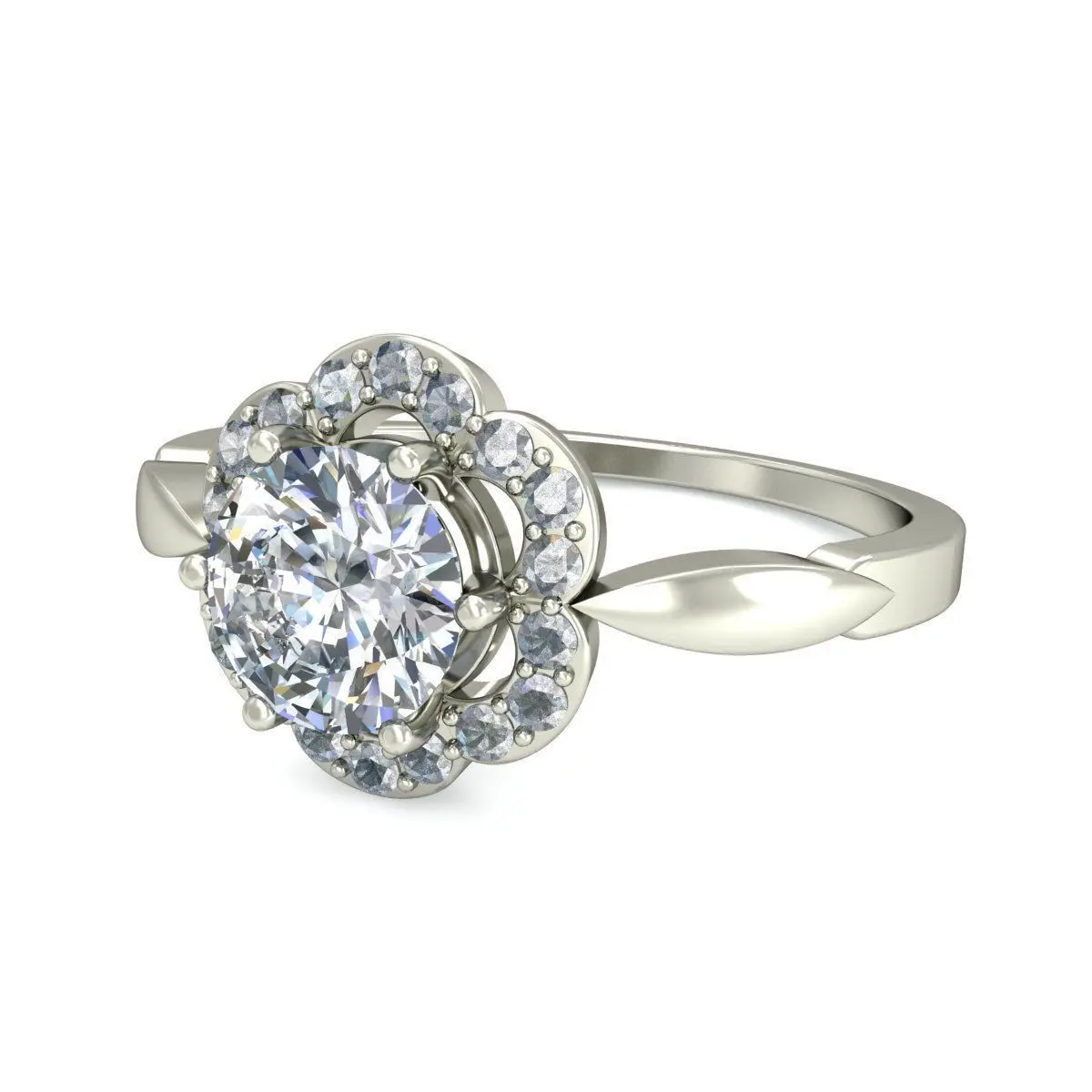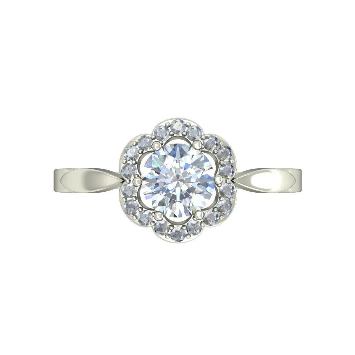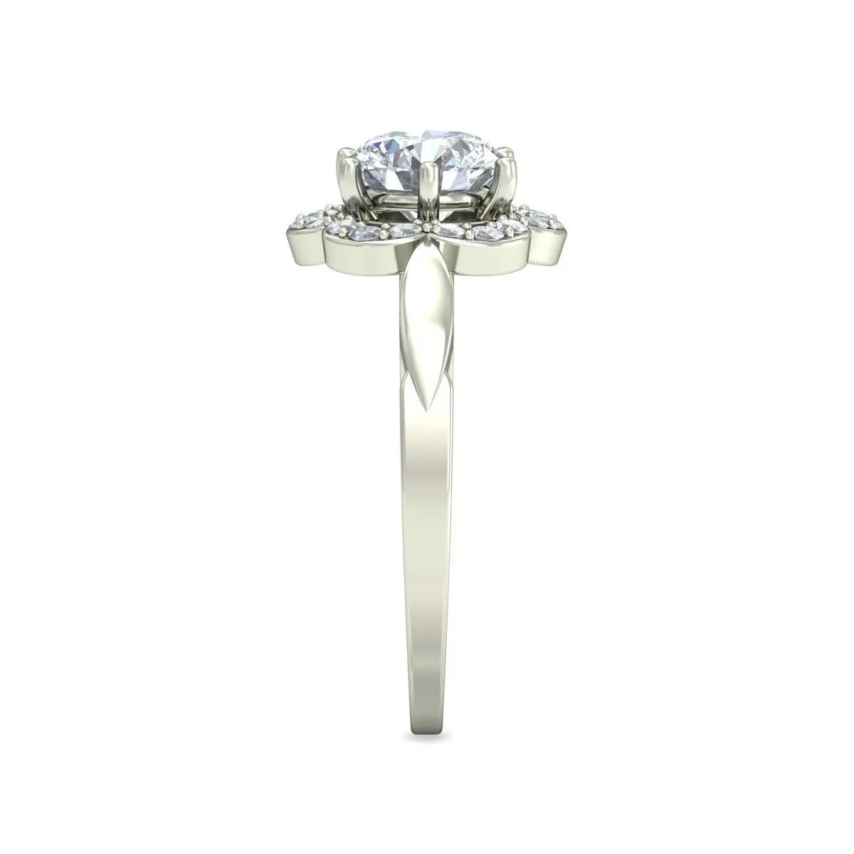 The Delicate Flower Diamond Ring in Sterling Silver is a sophisticated piece of jewelry designed to highlight the beauty of nature. This exquisite ring features a meticulously crafted floral motif, with petals adorned by sparkling diamonds that capture and reflect light brilliantly. The diamonds are set in a band of high-quality sterling silver, known for its durability and lustrous finish. This ring embodies a blend of elegance and refinement, making it a perfect accessory for special occasions or an everyday statement piece. The delicate flower design adds a touch of femininity and grace, making it an ideal gift for someone special or a treasured addition to your own collection.