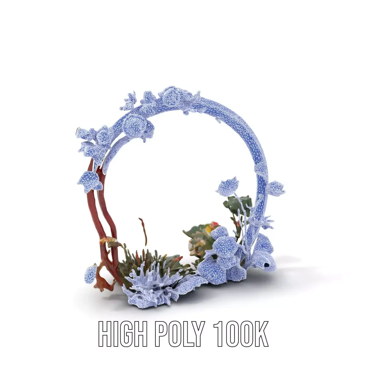 This elegant floral wreath 3D model pack features intricate detailing of various blooming flowers and lush greenery. It is ideal for creating charming decorative elements in interior design projects or as a backdrop in event renderings.