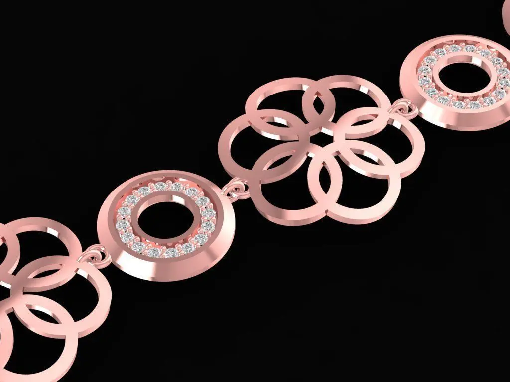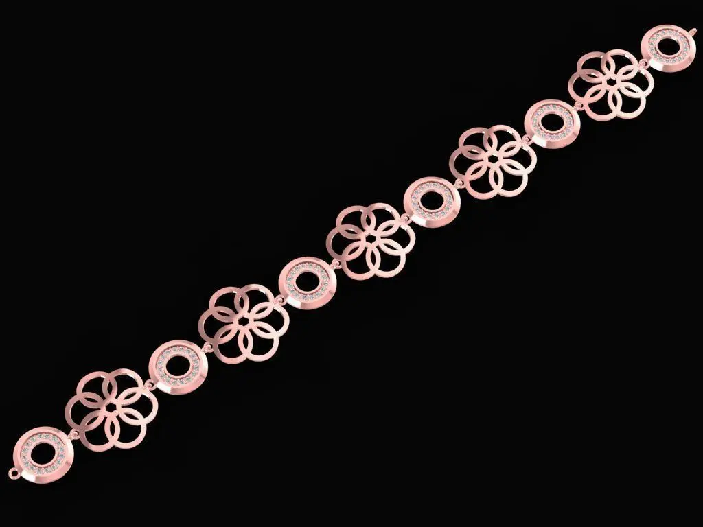 This 3D model features an elegant flower circle bracelet for women, designed with a series of interlinked floral patterns and circular frames.