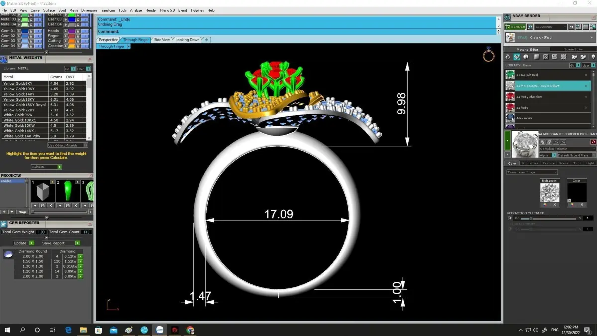 This model is professionally prepared for jewelry production. All dimensions, stone sizes, stone counts, and metal weight are clearly displayed in the preview images, allowing precise evaluation before casting. The geometry is clean, well-organized, and optimized for further customization or stone variation.