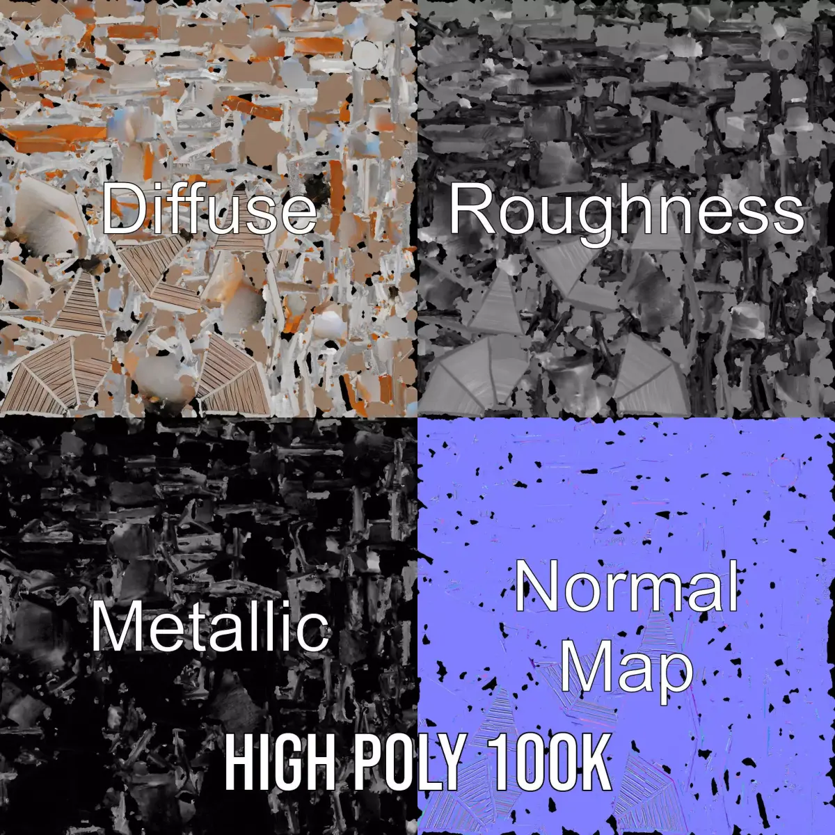 The model's textures are PBR, Diffuse, NormalMap, and reflection/roughness/metallic, which are suitable for any modern rendering engine. All models accurately unwrapped and have no overlapping UV. All textures are 4096*4096 in size.