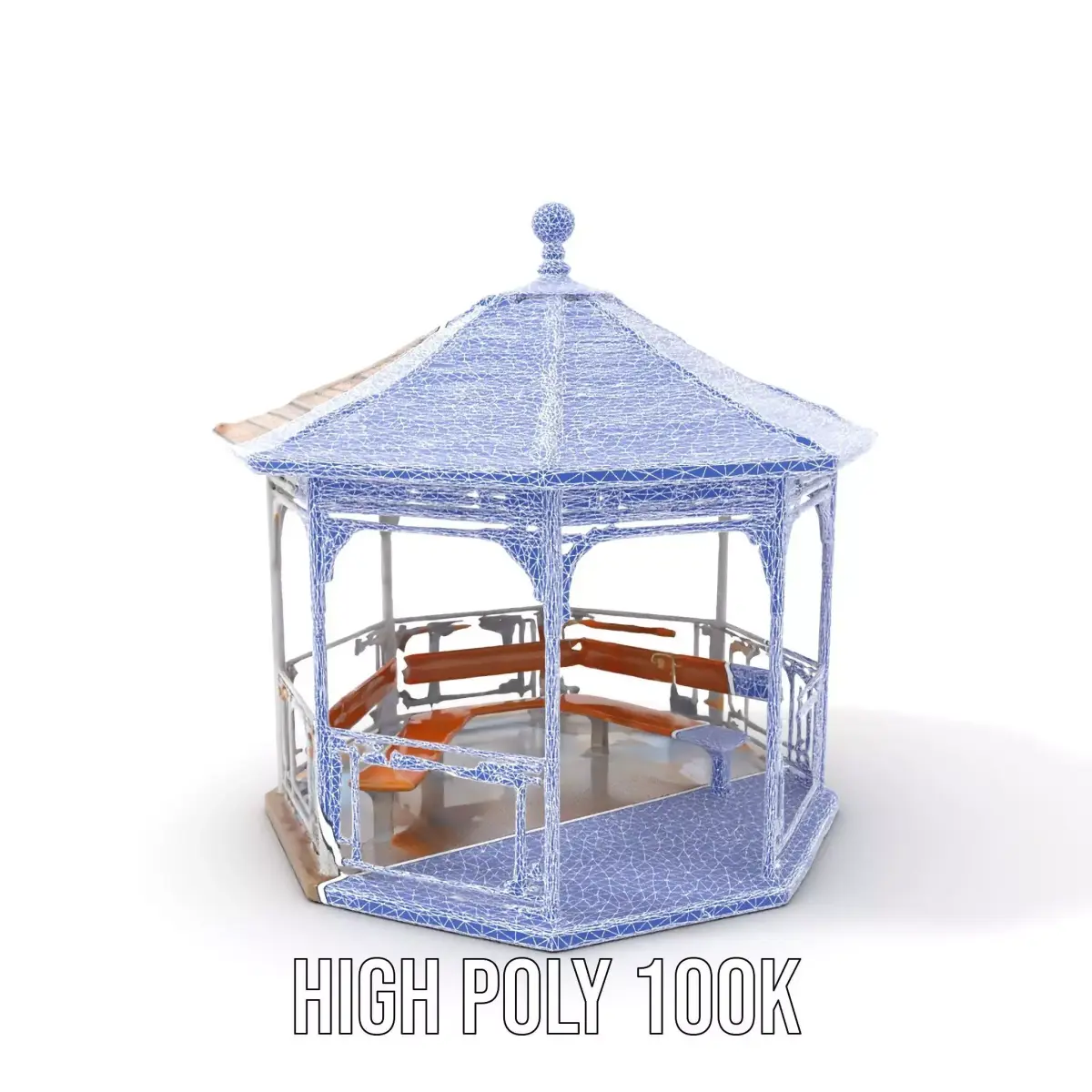 The gazebo is ideal for architectural visualization, landscape rendering, video games, and virtual tours, providing atmospheric realism and aesthetic appeal.