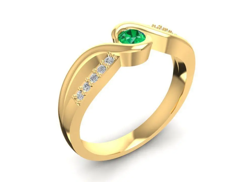 This elegant gemstone diamond ring for women is a refined jewelry design that highlights a perfect combination of sparkling round diamonds and a vivid central gemstone. The band is gracefully shaped with a smooth polished surface, set with side diamonds that enhance brilliance and luxury. At the center lies a beautiful round gemstone, available in vibrant green or red color, creating an eye-catching contrast and making it ideal for personal style or gifting.