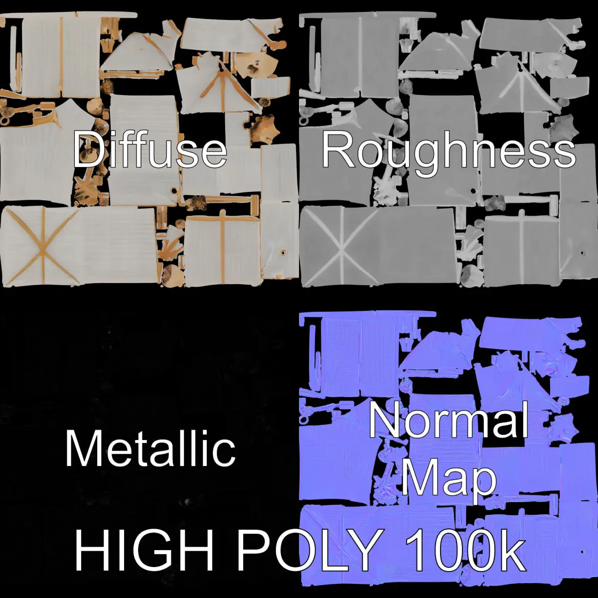 The model employs PBR, Diffuse, NormalMap, and reflection/roughness/metallic textures, ensuring compatibility with any modern rendering engine. All textures are 4096*4096 in size, ensuring high-quality detail. Each model is cleanly unwrapped with no overlapping UVs, allowing for seamless texturing.