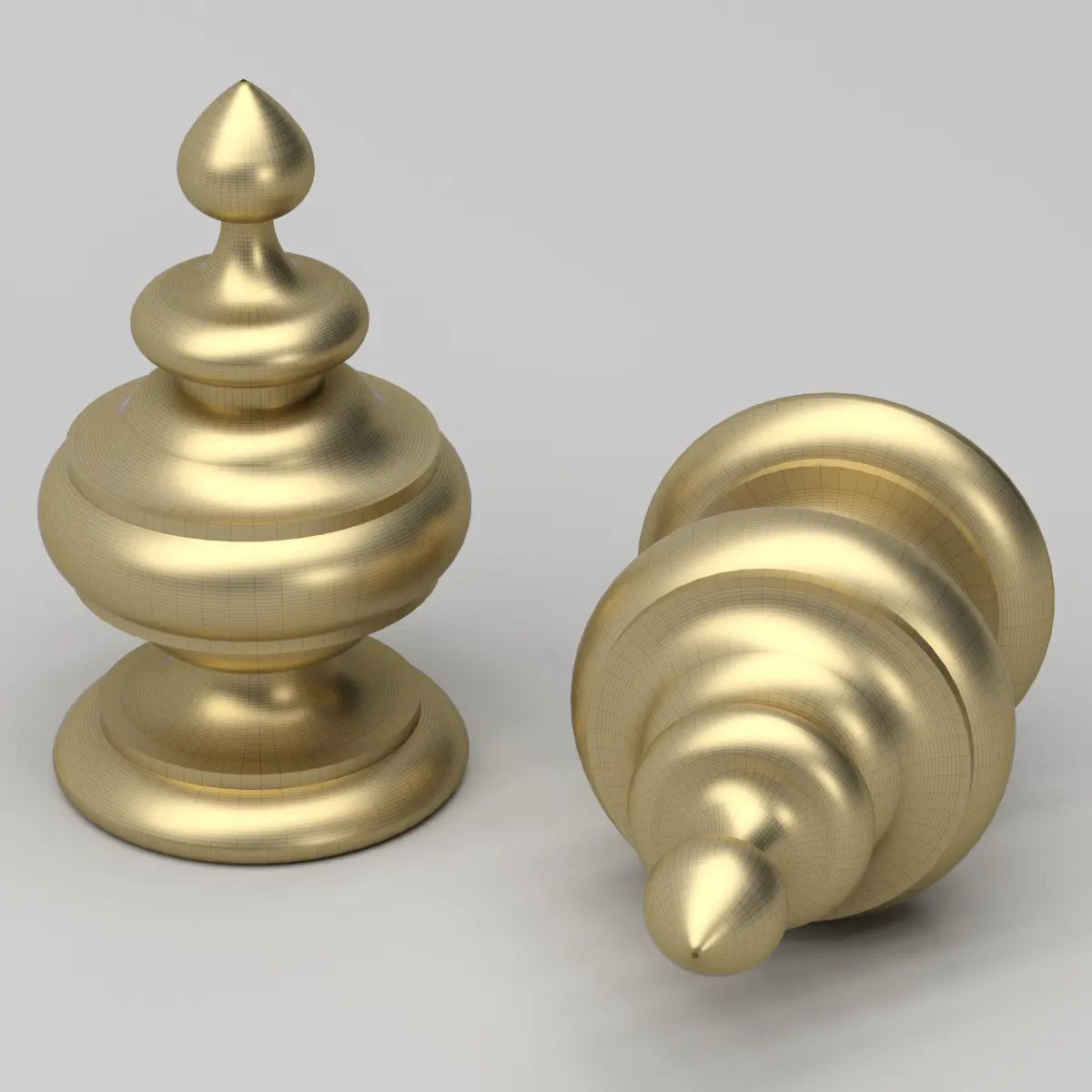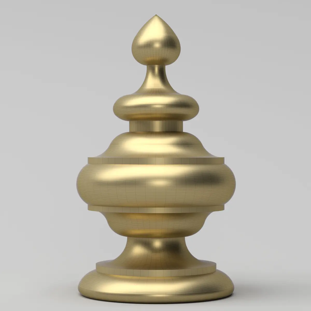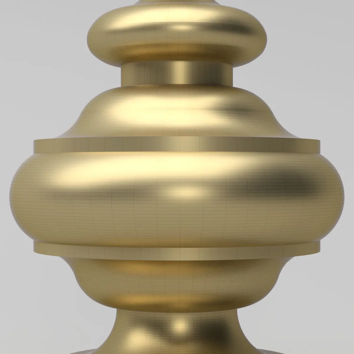 Enhance your architectural projects with this exquisite gold finial 3D model. Featuring a classic design, this finial showcases multiple rounded and bulbous elements stacked vertically, culminating in a pointed tip. The shiny gold finish adds a touch of sophistication and elegance, making it perfect for use in high-end architectural visualizations, historical recreations, or decorative projects. The model is meticulously detailed and optimized for both close-up renders and distant views.