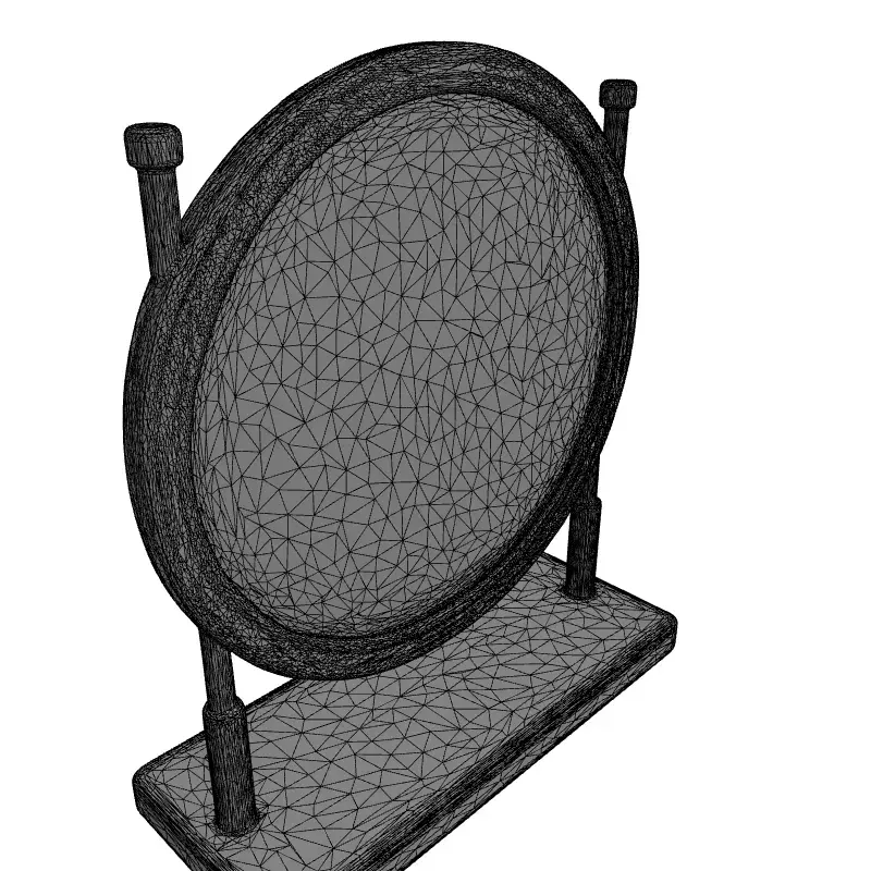 This highly detailed 3D model represents a modern and elegant round tabletop mirror, perfect for enhancing any virtual interior space. Featuring a luxurious golden metallic frame with subtle decorative grooves, the mirror is supported by sleek golden rods, all resting on a refined dark wood base. This versatile asset is ideal for various applications, including high-end architectural visualization projects, realistic interior design renderings, and populating virtual environments in game development. It can also be effectively utilized in augmented reality (AR) and virtual reality (VR) experiences, as well as for digital art creations. The model boasts clean, optimized topology, making it suitable for both static high-quality renderings and real-time interactive applications. It is fully UV unwrapped and includes high-resolution PBR textures to ensure realistic material representation, capturing the reflective properties of the mirror, the sheen of the gold, and the grain of the wood. Supported file formats include GLB, OBJ, FBX, USD, DAE, and ABC, providing broad compatibility across various 3D software and engines. Whether you are furnishing a luxurious virtual bedroom, a modern living room, or a chic office, this mirror will add a touch of sophistication and realism to your scene. Its meticulous design ensures easy integration into your projects, ready to render out-of-the-box.