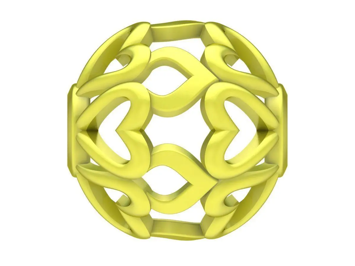 This elegant jewelry bead features an openwork heart pattern arranged in a spherical form, creating a delicate yet visually striking design. The smooth flowing heart motifs are evenly distributed around the bead, providing balance, symmetry, and a refined ornamental appearance suitable for luxury charm jewelry.