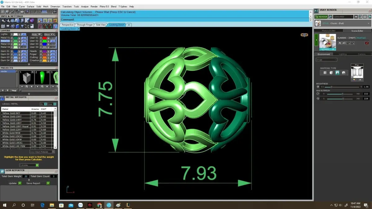All technical specifications, including bead diameter, hole size, and metal weight, are clearly shown in the preview images. This allows jewelers, CAD designers, and manufacturers to accurately assess the model before manufacturing.
