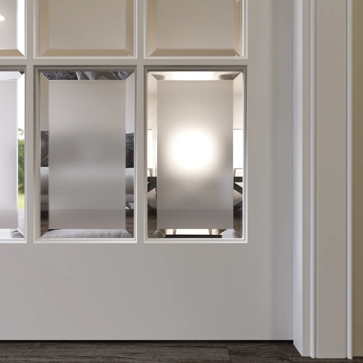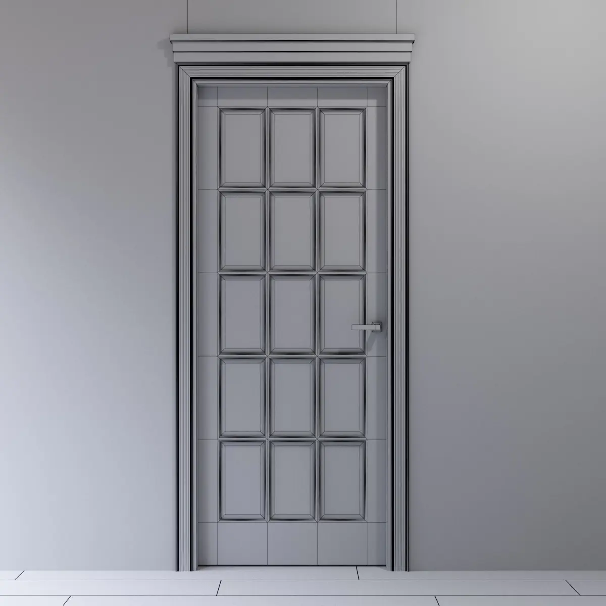 Elegant interior door with beveled glass.Сlassic style.The size of the door leaf is 2000 x 800 x 40 mm.Prepared for high resolution realistic renders. Previews were rendered in 3ds Max 2015, Corona renderer.Lighting, cameras and studio setups are not included.