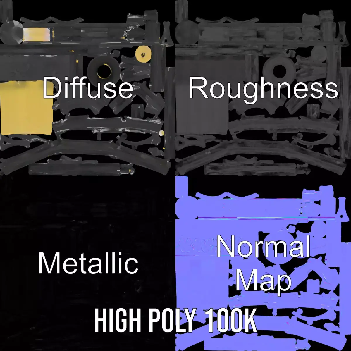 This elegant iron candle holder features intricate scroll patterns and a classic design, making it an ideal decorative piece. Its timeless elegance suits both modern and traditional settings. Each model has 3 levels of detail: low-poly (1000 triangles for mobile), middle-poly (10,000 triangles for environment), and high-poly (100,000 triangles), which allows for the use of this model in production rendering (such as 3ds Max, Maya, Cinema 4D, Blender, Vray/Corona/Cycles and all others), game engines (Unity and Unreal compatible), and interactive presentations, providing a choice of detail based on the LOD System principle. The model is perfect for interior design, period piece visualizations, and romantically themed animations. The model's textures are PBR, Diffuse, NormalMap, and reflection/roughness/metallic, suitable for any modern rendering engine. All models are accurately unwrapped with no overlapping UV. All textures are 4096*4096 in size. If you liked this model, please like and leave a comment.